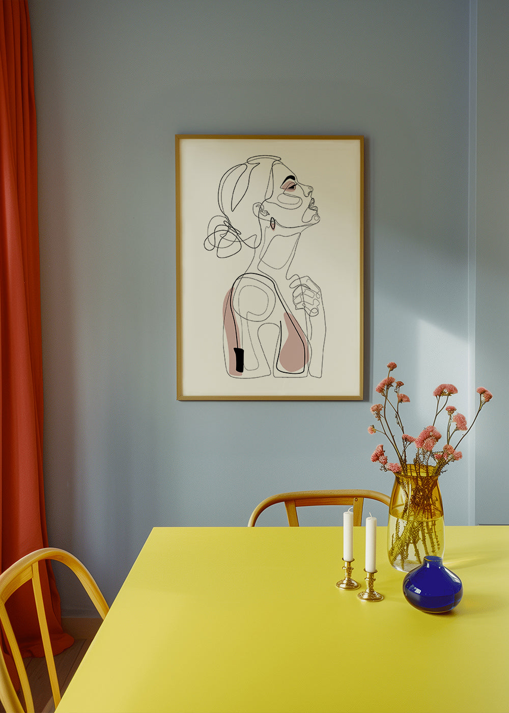 Ein Kunstdruck aus der Kollektion von line-art-bilder, des Kreativschöpfers Explicit Design, mit Pigmenten Rosa, und für die Bildpositionen Vertikal. Es ist eine schlichte Zeichnung mit sauberer Linienführung – kombiniere sie mit anderen Strich- und Linienzeichnungen für eine künstlerische Bilderwand. Das perfekte Kunstwerk, um deine Wohnung zu verschönern.