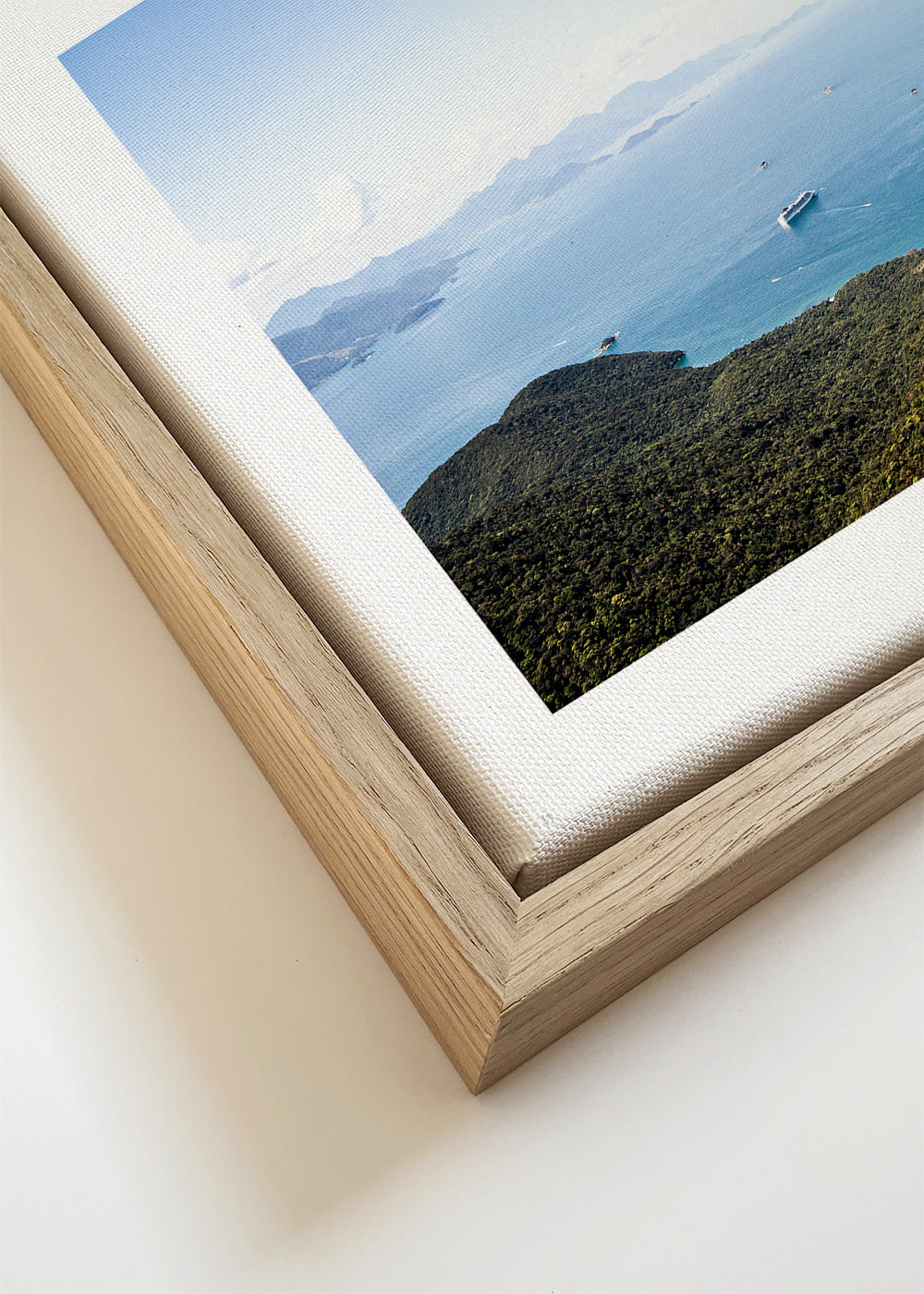 Alle unsere Rahmen werden in Spanien hergestellt. Die weißen, schwarzen und Eichenrahmen sind aus Ayous-Holz gefertigt, und die Eichenrahmen sind mit Eiche furniert, während die metallischen Rahmen aus Aluminium sind.