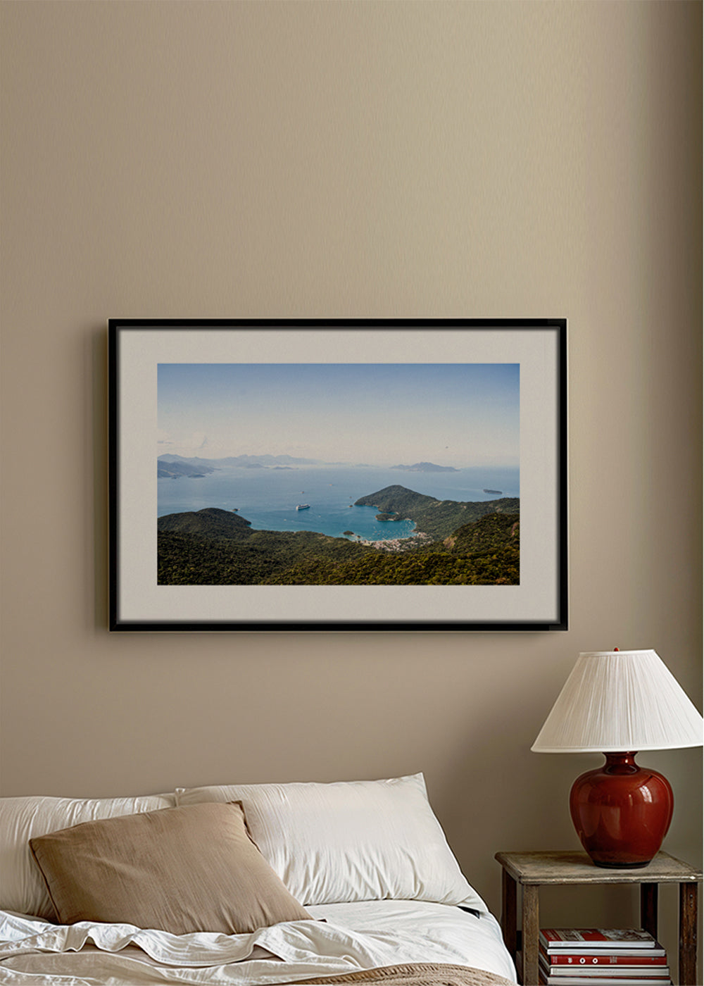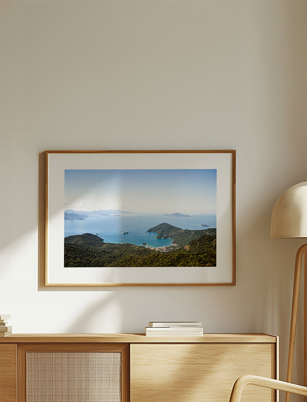 Schönes Designs aus unserer Kollektion von reise-bilder und poster, des Kreativschöpfers Ferran Feixas, in den Farbtönen Blau, und geeignet für Bildpositionen Horizontal. Eine schöne Landschaft, perfekt zur Kombination mit jeder Natur-Deko. Lasse deine Wände Geschichten erzählen. Wandbild mit weißem Rand, um das Bild hervorzuheben.