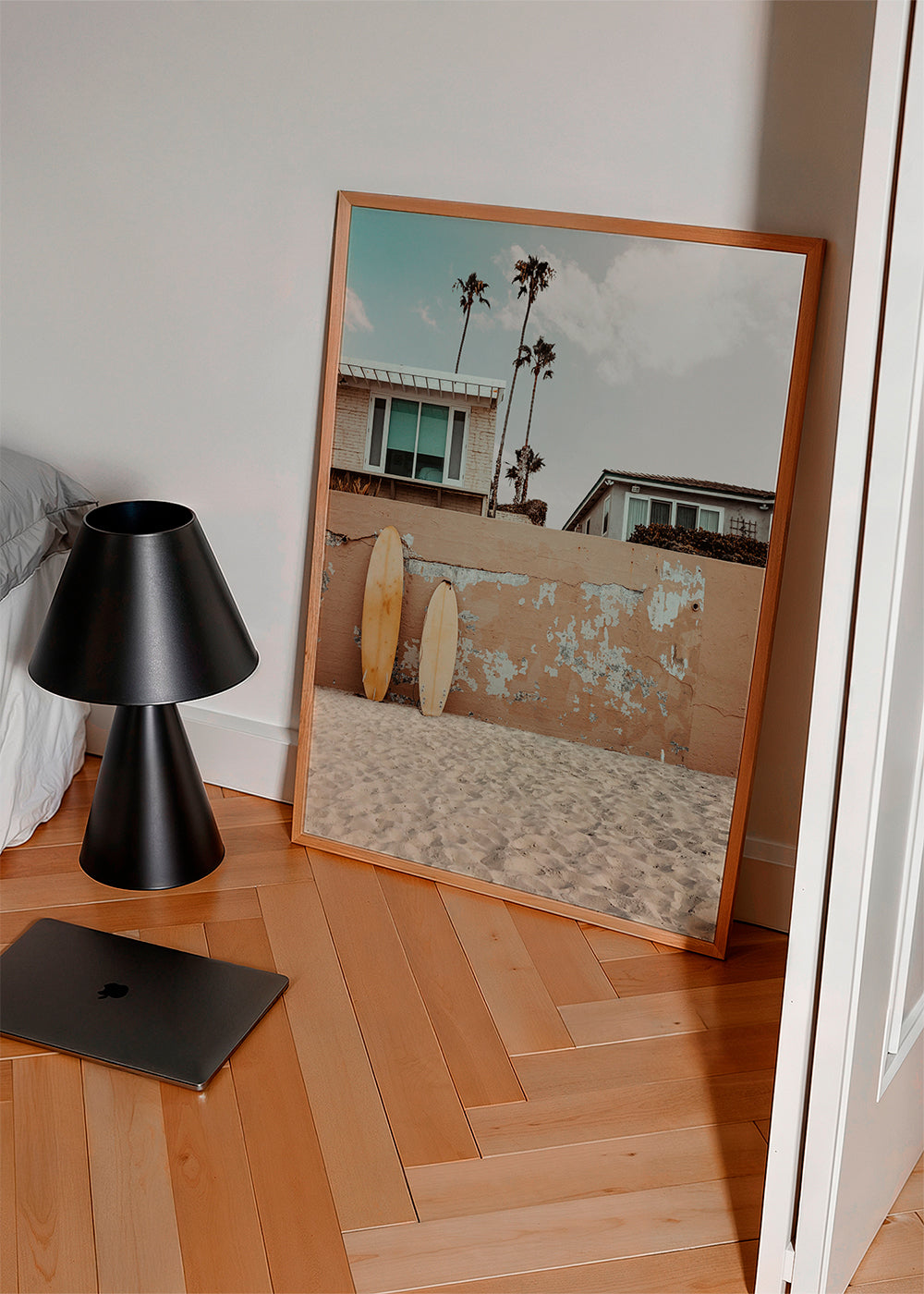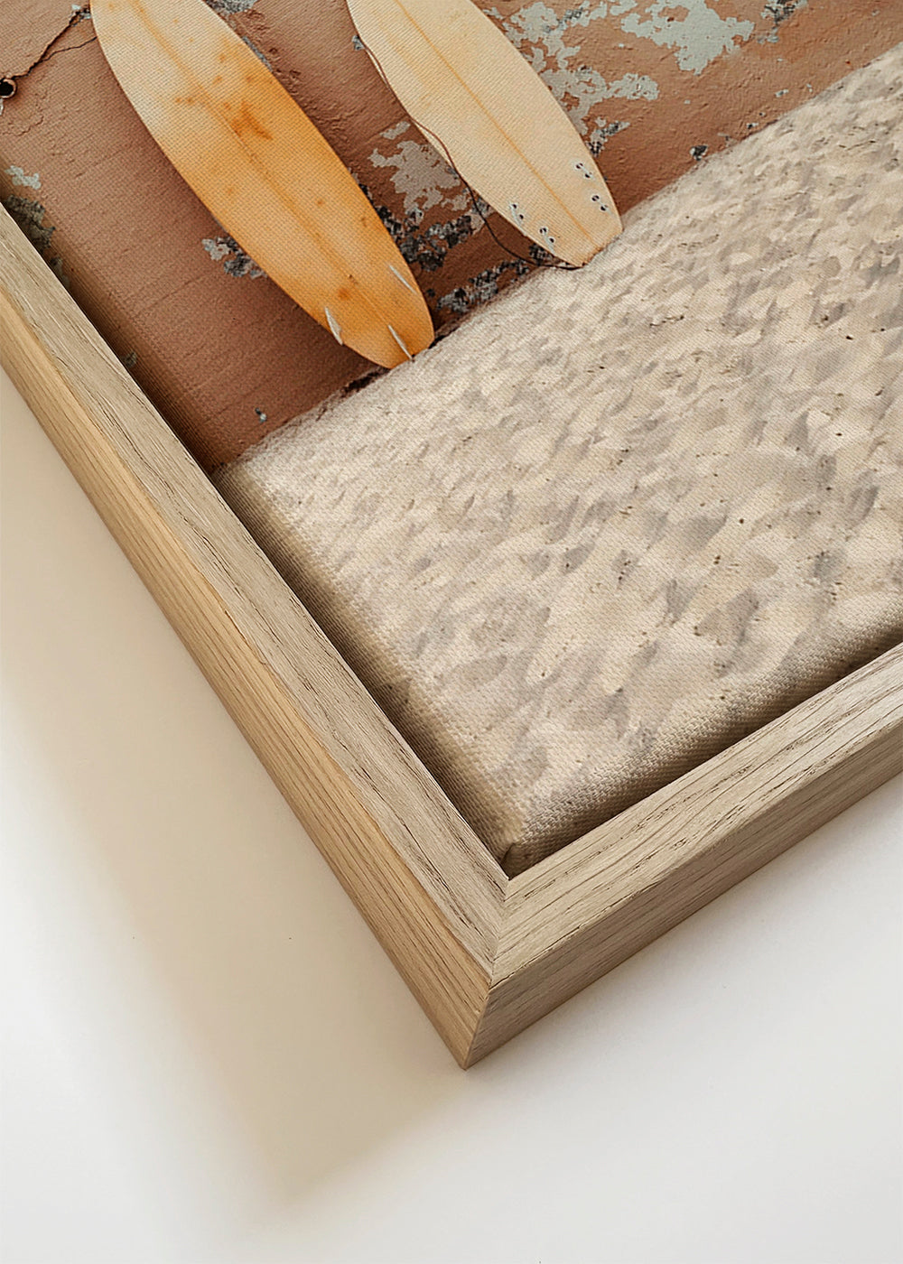 Alle unsere Rahmen werden in Spanien hergestellt. Die weißen, schwarzen und Eichenrahmen sind aus Ayous-Holz gefertigt, und die Eichenrahmen sind mit Eiche furniert, während die metallischen Rahmen aus Aluminium sind.