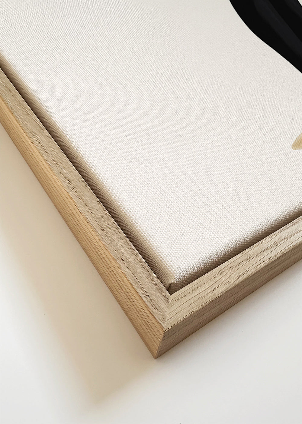Alle unsere Rahmen werden in Spanien hergestellt. Die weißen, schwarzen und Eichenrahmen sind aus Ayous-Holz gefertigt, und die Eichenrahmen sind mit Eiche furniert, während die metallischen Rahmen aus Aluminium sind.