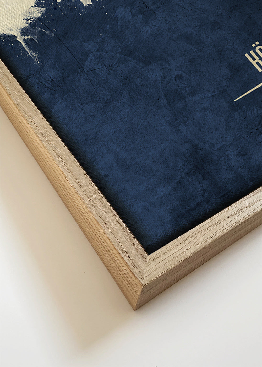 Wenn Sie die Passepartout-Option wählen, fügen wir die weiße matte Platte dem Rahmen hinzu und reduzieren das Design der Arbeit. Wählen Sie beispielsweise ein Druckformat 50x70 cm, mit eichenfarbenem Rahmen und Passepartout, reduzieren wir das Design des Druckes auf das bisherige Format (40x50cm). So passt es sich perfekt an das Innenfenster des Passepartouts an.