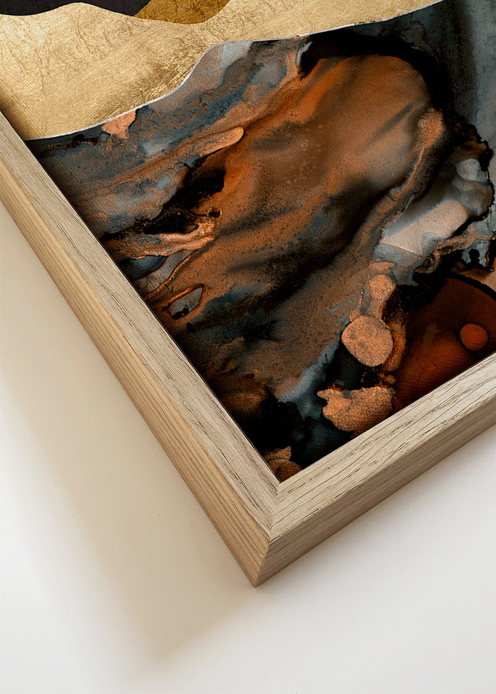 Wenn Sie die Passepartout-Option wählen, fügen wir die weiße matte Platte dem Rahmen hinzu und reduzieren das Design der Arbeit. Wählen Sie beispielsweise ein Druckformat 50x70 cm, mit eichenfarbenem Rahmen und Passepartout, reduzieren wir das Design des Druckes auf das bisherige Format (40x50cm). So passt es sich perfekt an das Innenfenster des Passepartouts an.