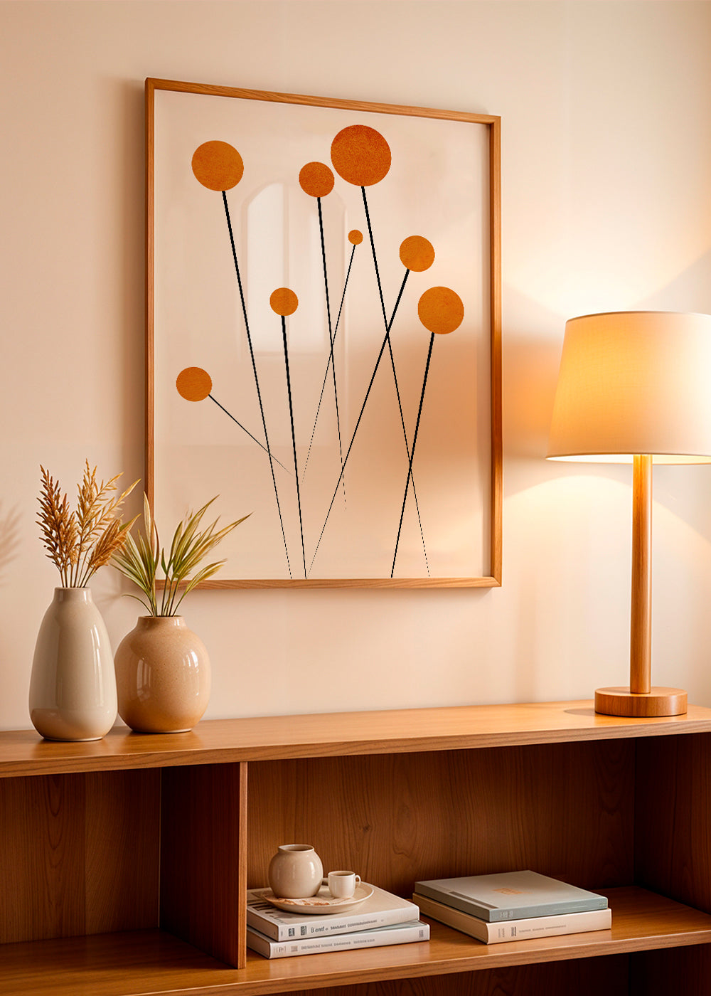 Wenn Sie die Passepartout-Option wählen, fügen wir die weiße matte Platte dem Rahmen hinzu und reduzieren das Design der Arbeit. Wählen Sie beispielsweise ein Druckformat 50x70 cm, mit eichenfarbenem Rahmen und Passepartout, reduzieren wir das Design des Druckes auf das bisherige Format (40x50cm). So passt es sich perfekt an das Innenfenster des Passepartouts an.