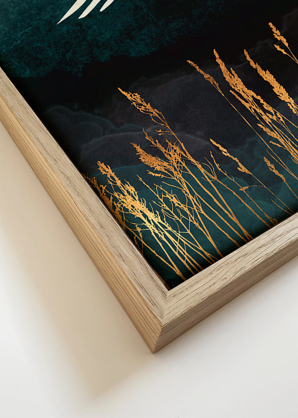 Wenn Sie die Passepartout-Option wählen, fügen wir die weiße matte Platte dem Rahmen hinzu und reduzieren das Design der Arbeit. Wählen Sie beispielsweise ein Druckformat 50x70 cm, mit eichenfarbenem Rahmen und Passepartout, reduzieren wir das Design des Druckes auf das bisherige Format (40x50cm). So passt es sich perfekt an das Innenfenster des Passepartouts an.