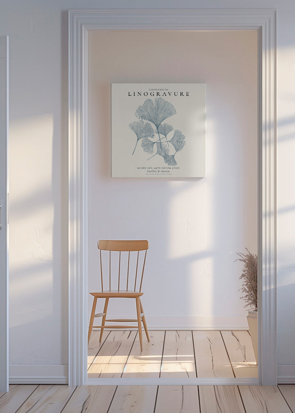 Scandi-Poster Exposition de linogravure, Ginkgo leaves - SQUARE