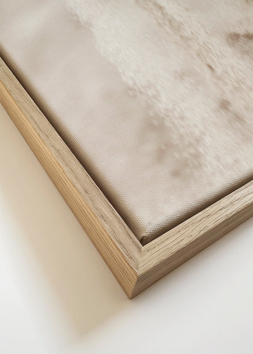 Alle unsere Rahmen werden in Spanien hergestellt. Die weißen, schwarzen und Eichenrahmen sind aus Ayous-Holz gefertigt, und die Eichenrahmen sind mit Eiche furniert, während die metallischen Rahmen aus Aluminium sind.