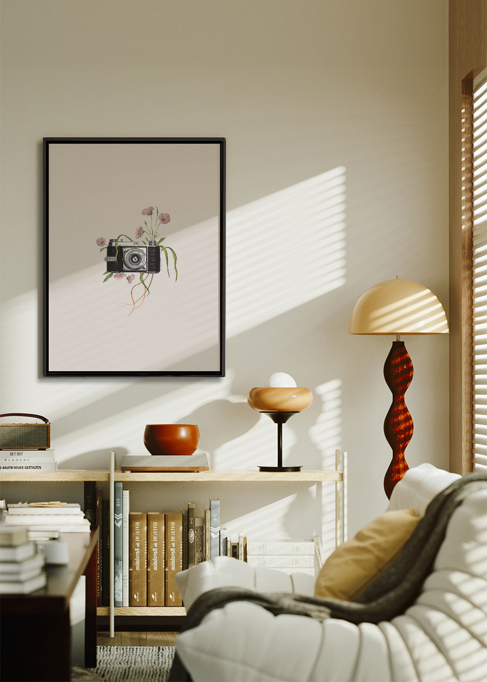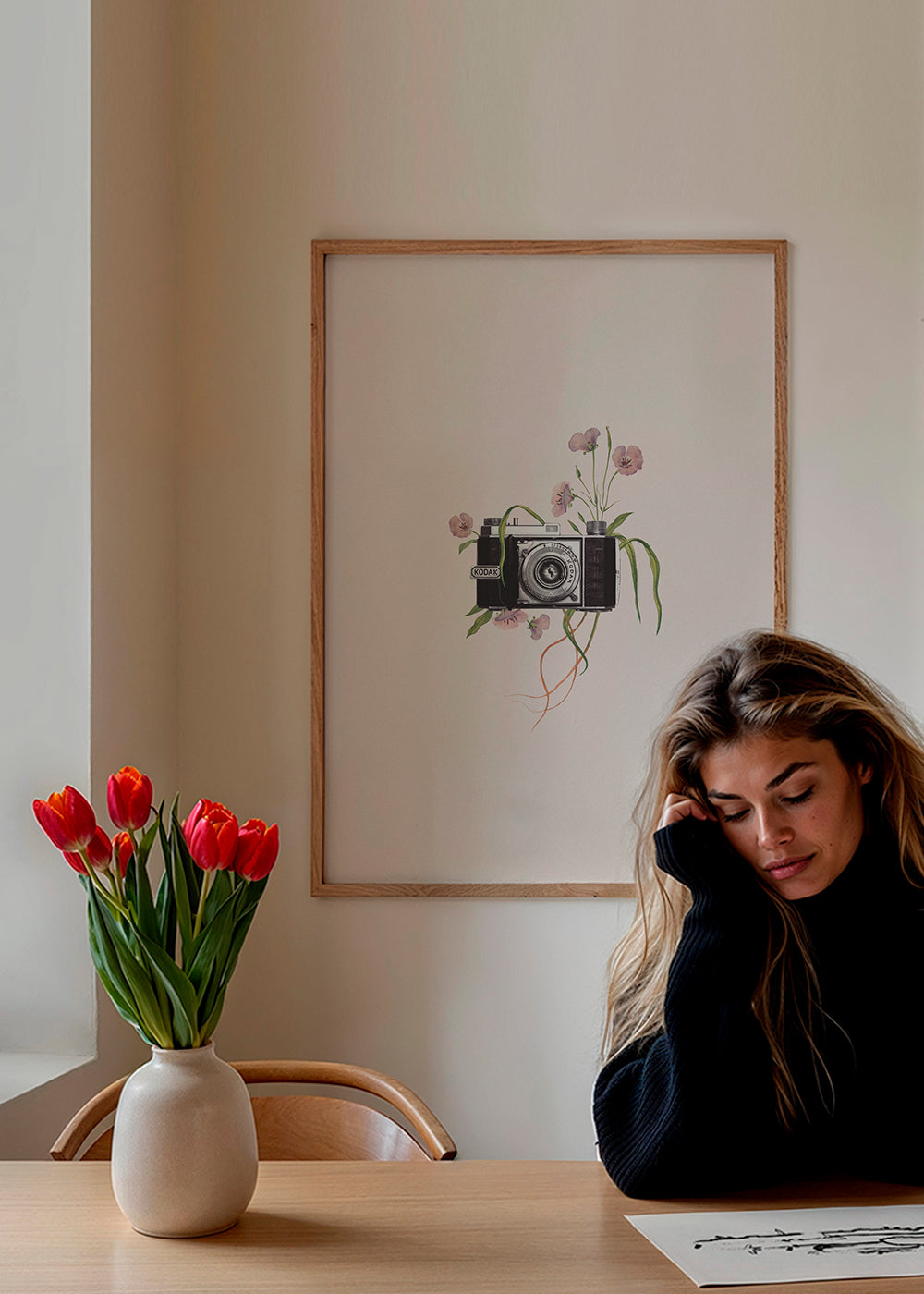 Gemälde im nordischen Stil mit floraler Kodak-Kamera
