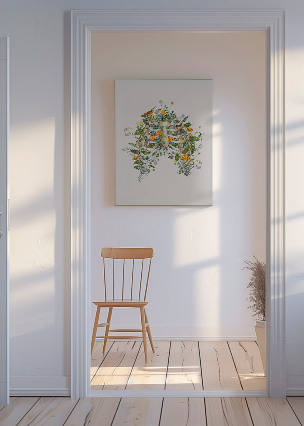 Gemälde im nordischen Stil mit Blumen-Brustkorb