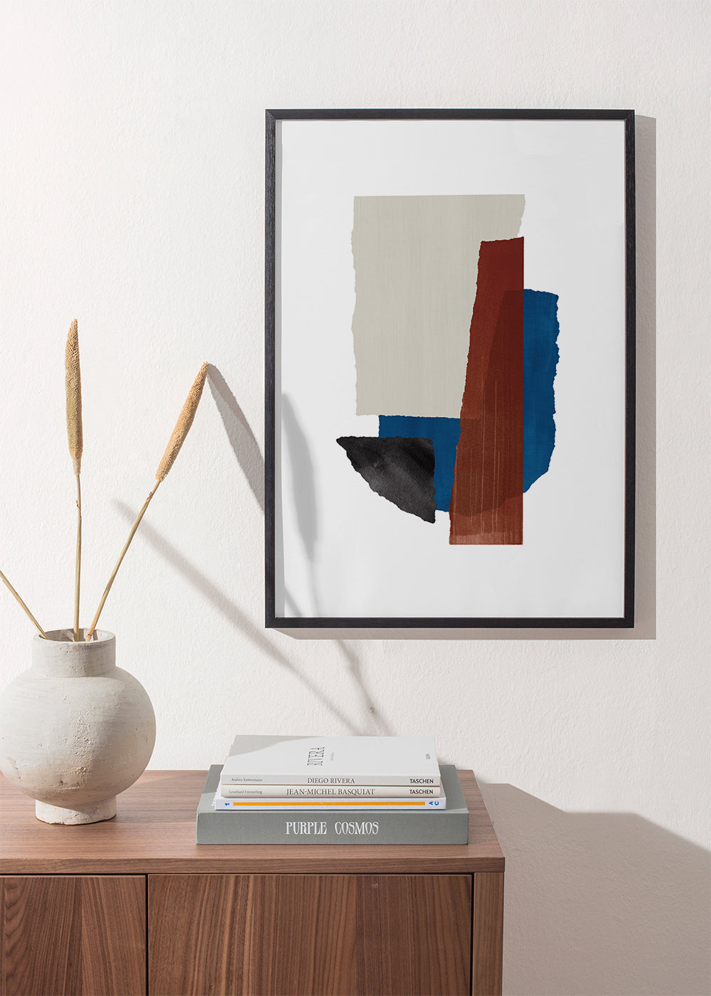 Schönes Wandbild aus der Kollektion von geometrische bilder, Künstlern Nouveau Prints, mit Schattierungen Rot, und ideal für die Bildposition Vertikal. Der Kunstdruck mit abstrakten Formen lässt sich hervorragend mit geometrischen Formen und abstrakter Kunst kombinieren. Richte deine Wohnung mit Kunst ein.