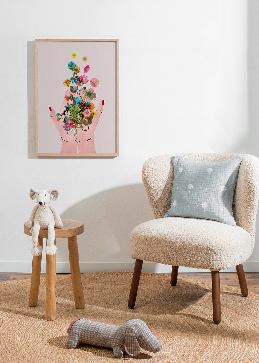 Um unsere Rahmen aufzuhängen, müssen Sie den schwarzen oder silbernen Metallbügel leicht von der Rückseite lösen. Einmal getrennt, können Sie es an dem Aufhänger aufhängen, den Sie je nach Material Ihrer Wand ausgewählt haben.