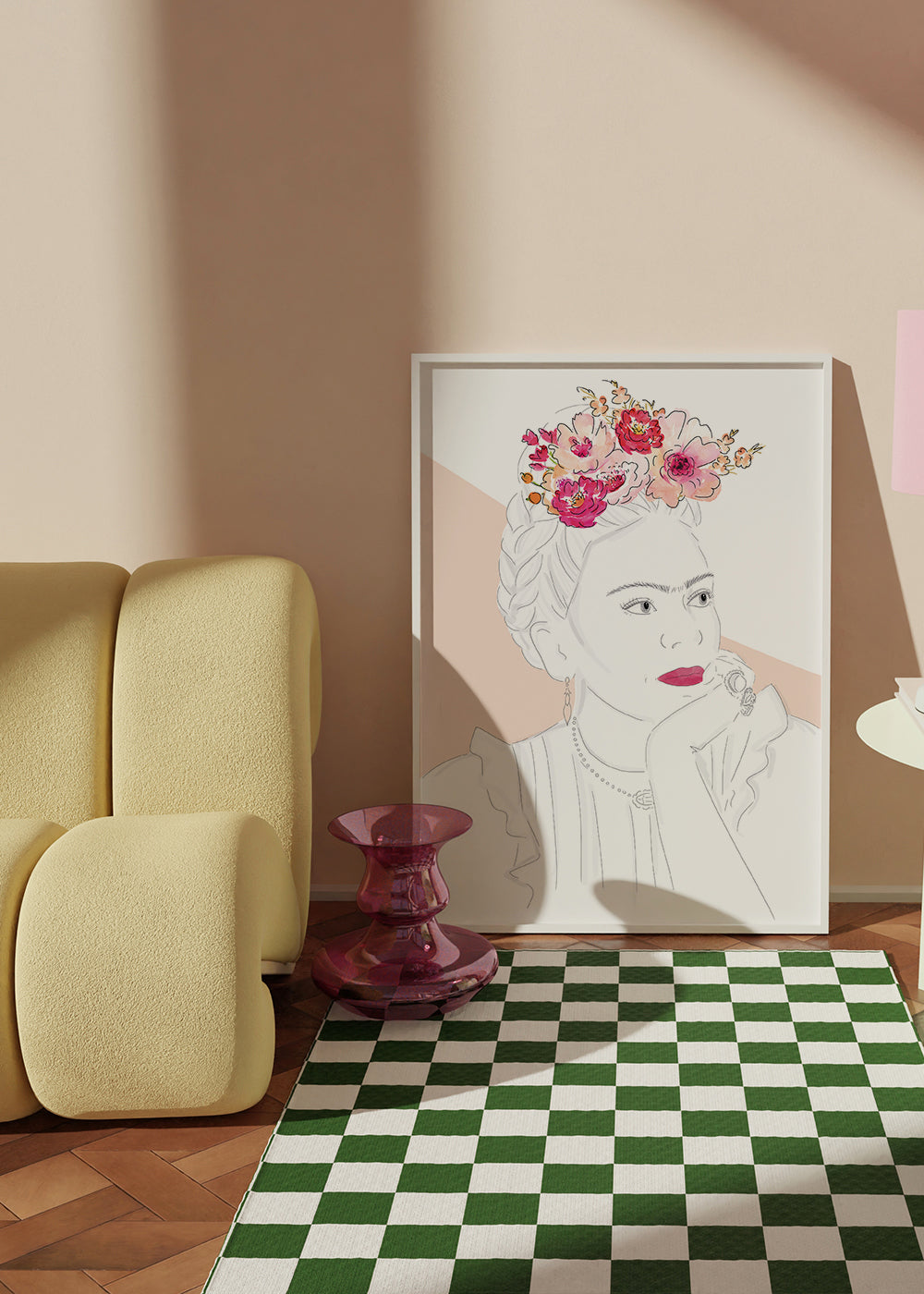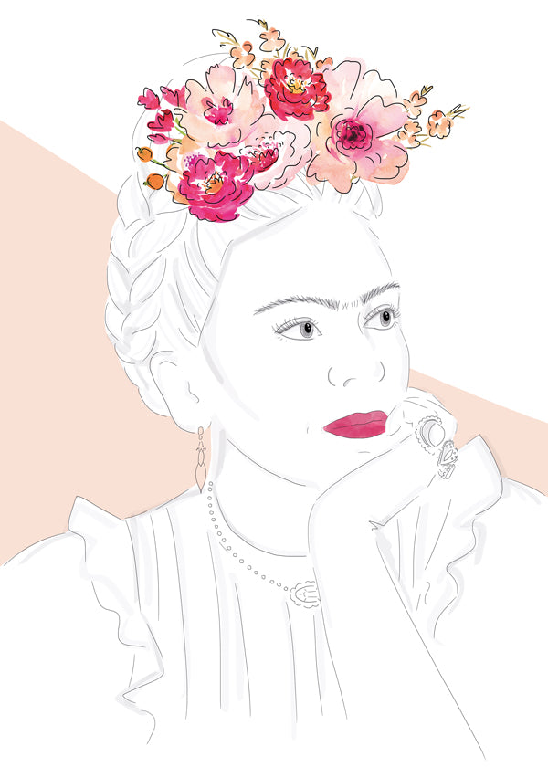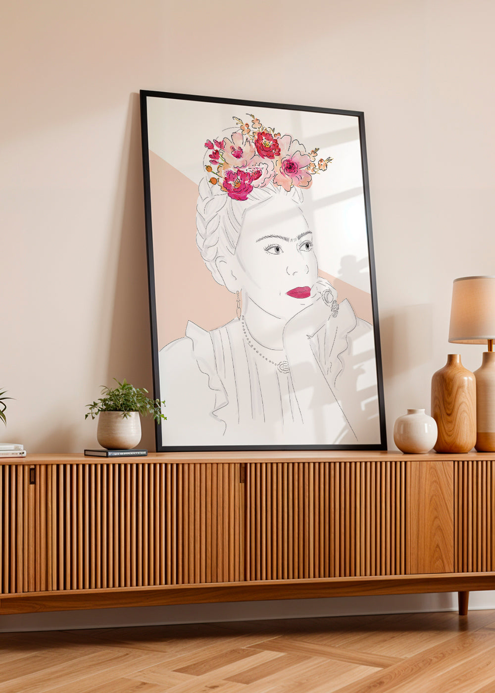 Ein Kunstdruck Im Stil unserer frida-kahlo-poster, von Kruth Design, mit Farben Rosa, und mit Ausrichtung Vertikal. Illustration zählt zu der deutlichsten Ausdrucksform der bildenden Kunst. Dieses Wandbild lässt niemanden gleichgültig. Elegante Wände für schicke Wohnungen.