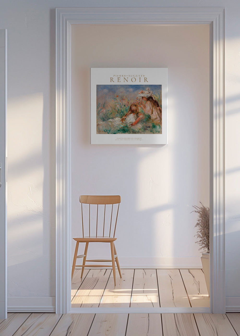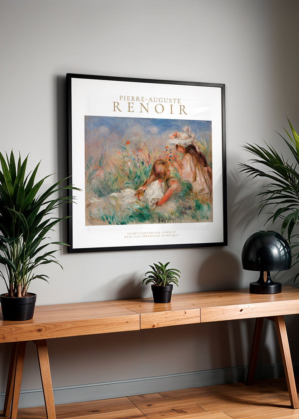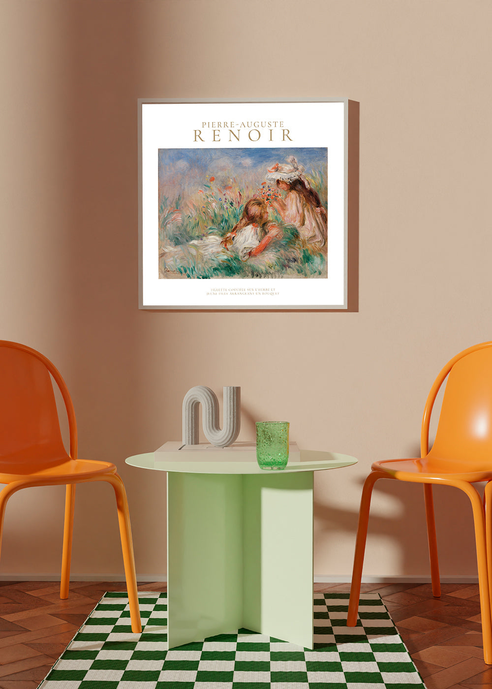 Scandi-Poster Girls in the Grass Arranging a Bouquet by Pierre-Auguste Renoir - Square