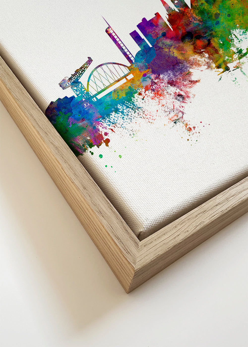 Alle unsere Rahmen werden in Spanien hergestellt. Die weißen, schwarzen und Eichenrahmen sind aus Ayous-Holz gefertigt, und die Eichenrahmen sind mit Eiche furniert, während die metallischen Rahmen aus Aluminium sind.