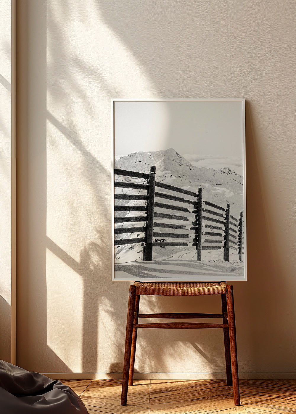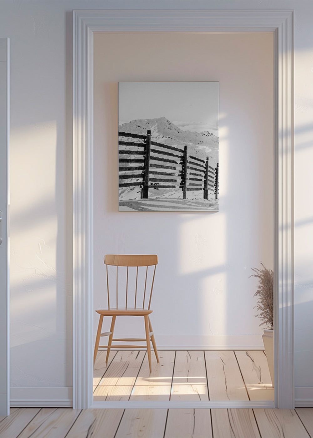 Dieses Wandbild gehört zum Thema winterlandschaft-bilder und poster mit winter-motiven, designed von Victoria Frost, mit Nuancen Schwarz, und mit Ausrichtung Vertikal. Eine schöne Landschaft, perfekt zur Kombination mit jeder Natur-Deko. Verleihe deiner Inneneinrichtung einen künstlerischen Touch.
