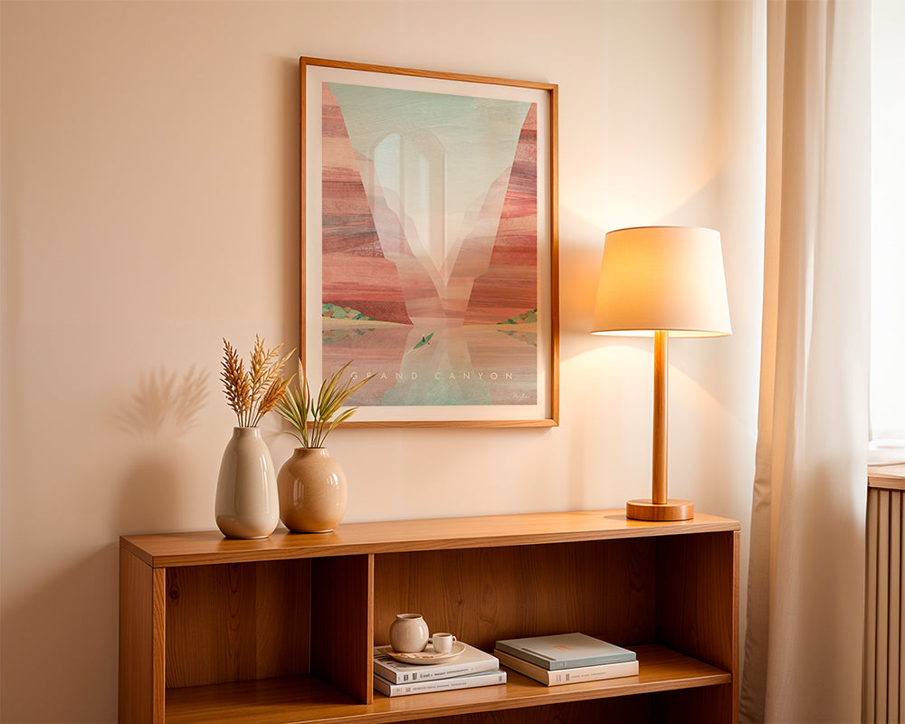 Wenn Sie die Passepartout-Option wählen, fügen wir die weiße matte Platte dem Rahmen hinzu und reduzieren das Design der Arbeit. Wählen Sie beispielsweise ein Druckformat 50x70 cm, mit eichenfarbenem Rahmen und Passepartout, reduzieren wir das Design des Druckes auf das bisherige Format (40x50cm). So passt es sich perfekt an das Innenfenster des Passepartouts an.