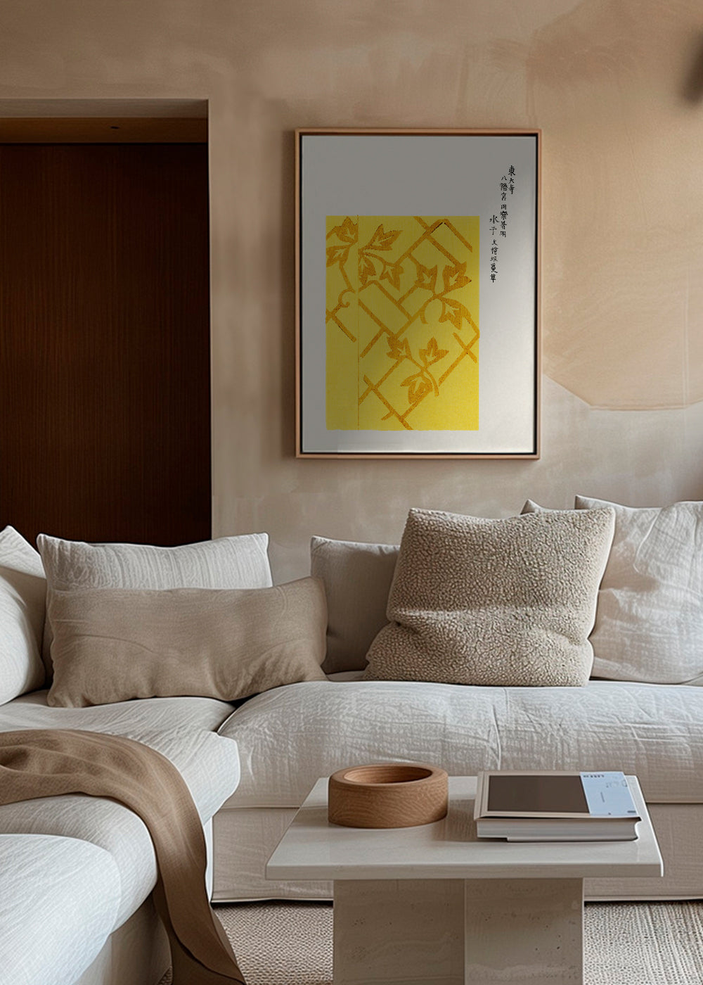 Ein Kunstwerk aus unserer Bilderauswahl japan-bilder und poster, Originalbild von Seven Wall Art, mit einem Hauch von gelb, und im Format vertikal. Ein Kunstwerk im minimalistischen Stil und schlichten Design, das sich wunderbar mit anderen Dekoelementen kombinieren lässt. Verleihe deinem Wohnstil Eleganz und Originalität mit minimalistischen Bildern. Hier findest du kunstvolle Wanddekoration.