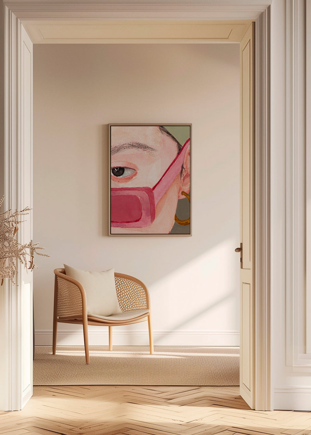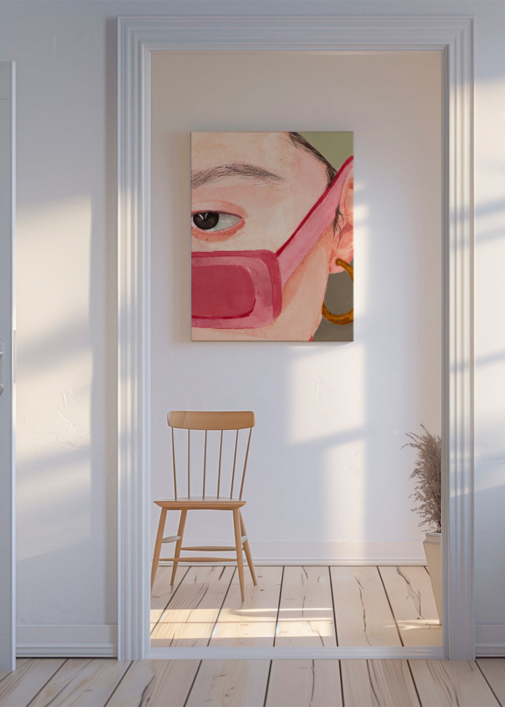 Das Passepartout ist eine weiße, matte Pappe, die das Poster umgibt, um es vor Methacrylat zu schützen, und die auch die Ausdruckskraft der Arbeit verstärkt und Details hervorhebt.