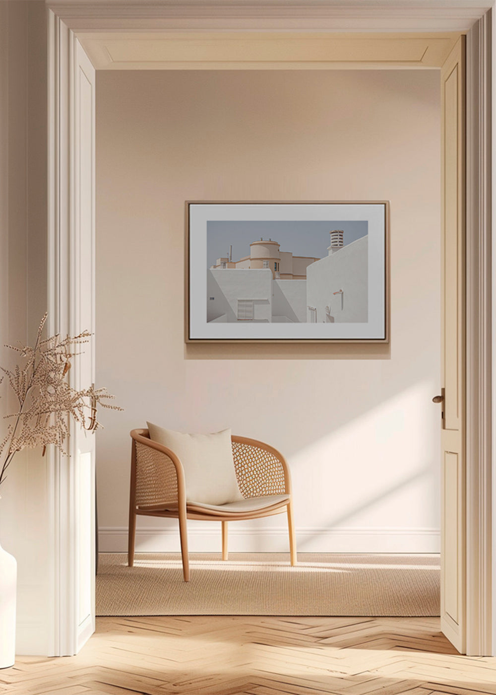 Alle unsere Rahmen werden in Spanien hergestellt. Die weißen, schwarzen und Eichenrahmen sind aus Ayous-Holz gefertigt, und die Eichenrahmen sind mit Eiche furniert, während die metallischen Rahmen aus Aluminium sind.