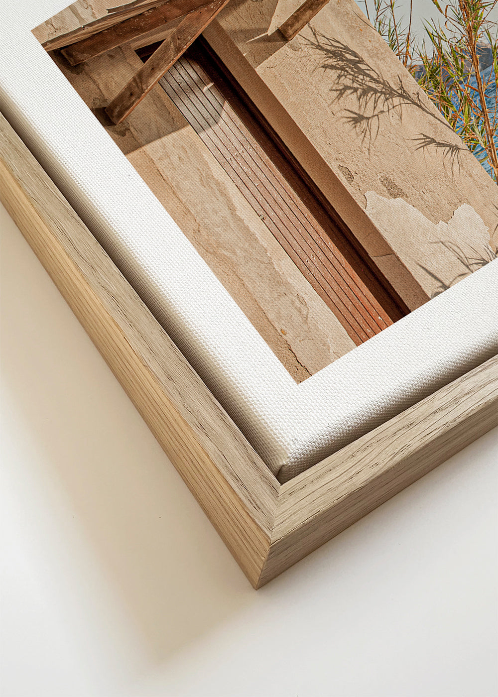 Alle unsere Rahmen werden in Spanien hergestellt. Die weißen, schwarzen und Eichenrahmen sind aus Ayous-Holz gefertigt, und die Eichenrahmen sind mit Eiche furniert, während die metallischen Rahmen aus Aluminium sind.