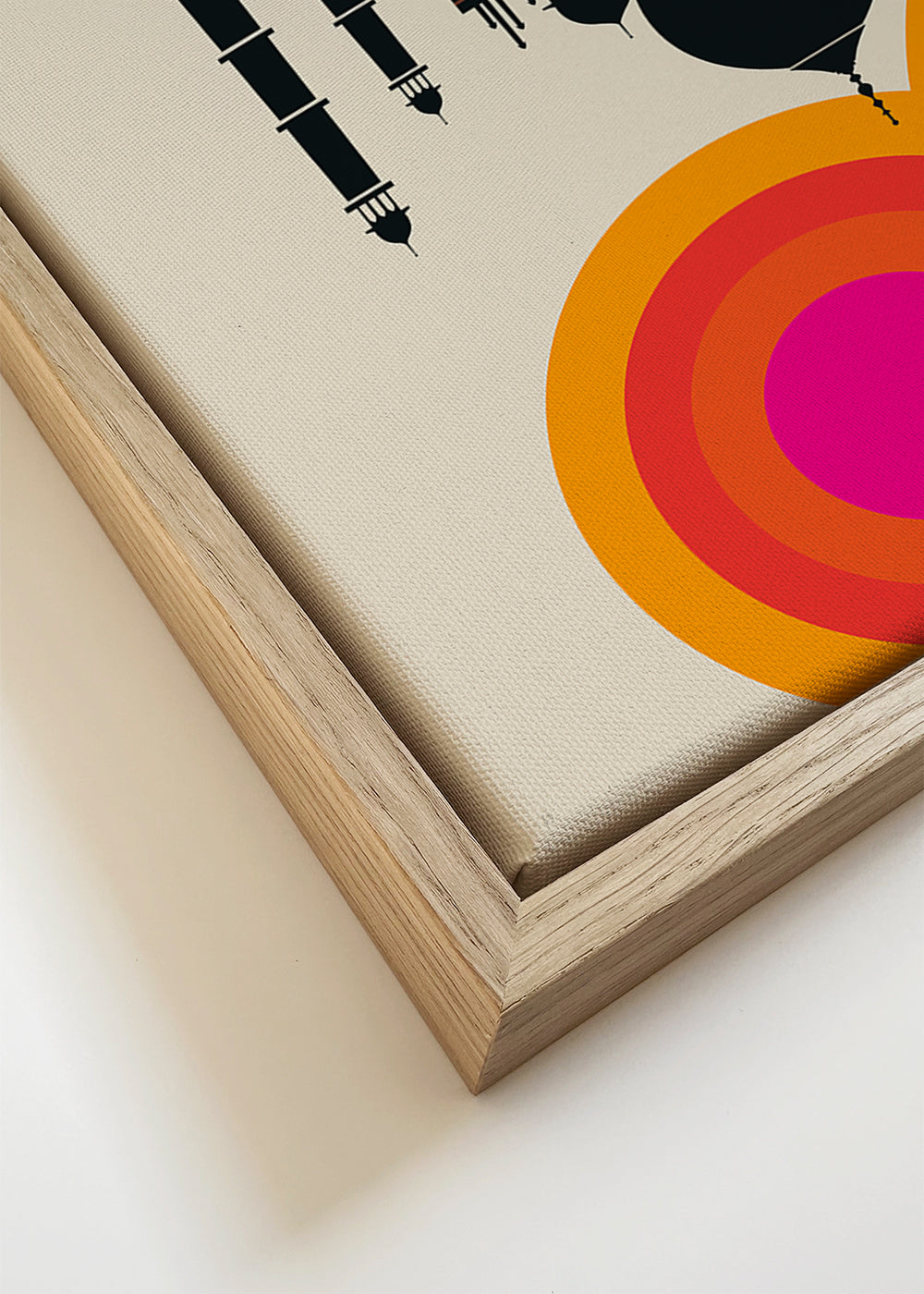 Wenn Sie die Passepartout-Option wählen, fügen wir die weiße matte Platte dem Rahmen hinzu und reduzieren das Design der Arbeit. Wählen Sie beispielsweise ein Druckformat 50x70 cm, mit eichenfarbenem Rahmen und Passepartout, reduzieren wir das Design des Druckes auf das bisherige Format (40x50cm). So passt es sich perfekt an das Innenfenster des Passepartouts an.