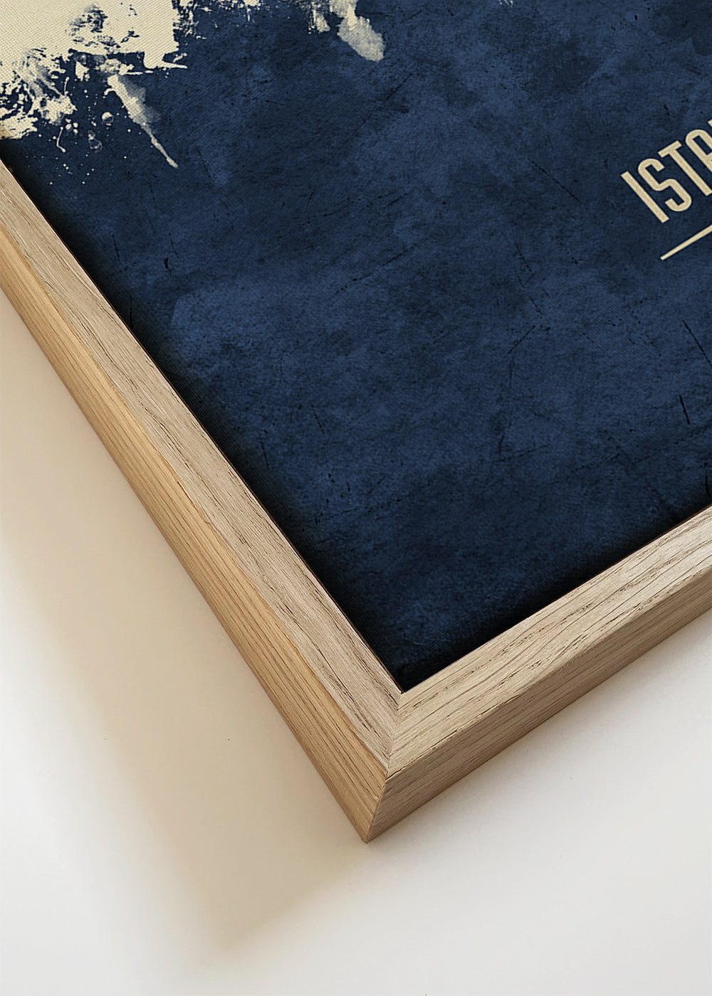Wenn Sie die Passepartout-Option wählen, fügen wir die weiße matte Platte dem Rahmen hinzu und reduzieren das Design der Arbeit. Wählen Sie beispielsweise ein Druckformat 50x70 cm, mit eichenfarbenem Rahmen und Passepartout, reduzieren wir das Design des Druckes auf das bisherige Format (40x50cm). So passt es sich perfekt an das Innenfenster des Passepartouts an.