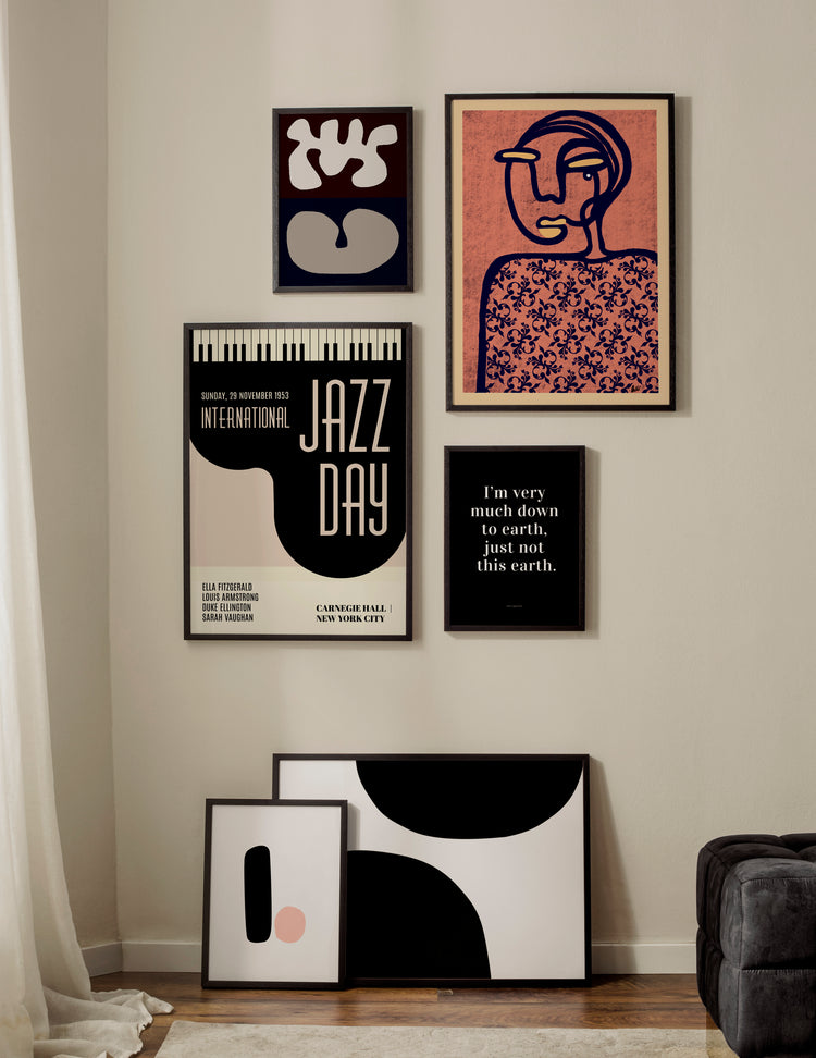 Ein Kunstwerk aus unserer Kollektion von jazz-poster, von Kubistika, in den Farbtönen Schwarz, und mit Ausrichtung Vertikal. Geometrische Bilder sind eine ausgezeichnete Wahl für moderne und avantgardistische Einrichtungsstile. Gestalte besondere Bereiche in deiner Wohnung.