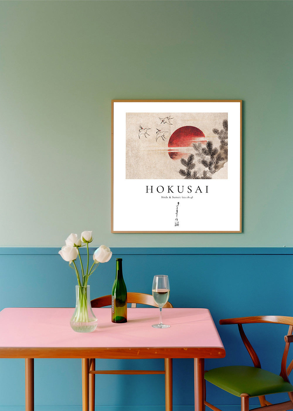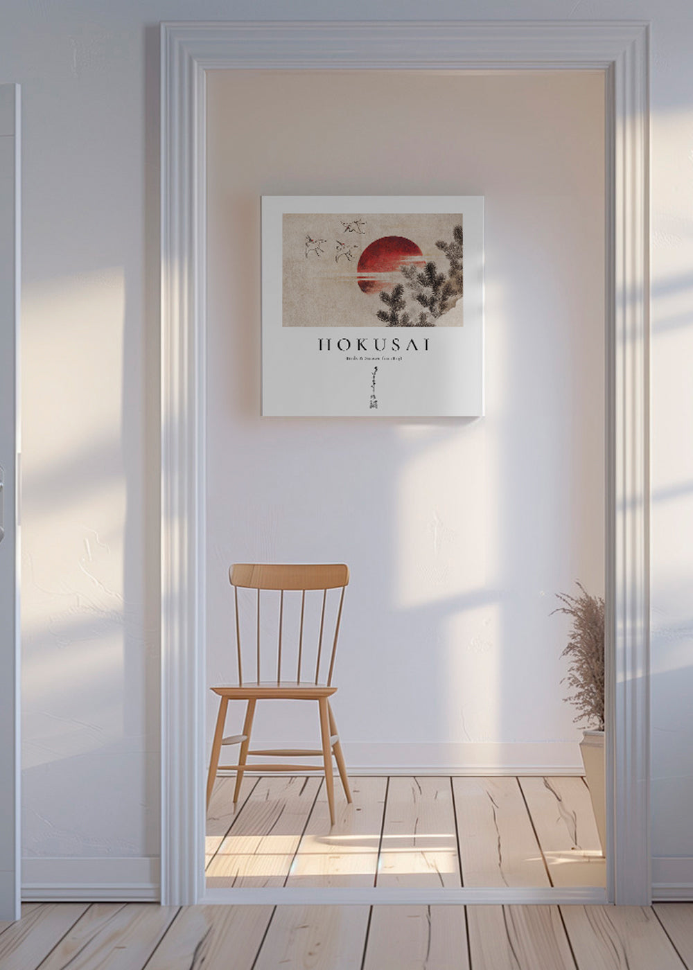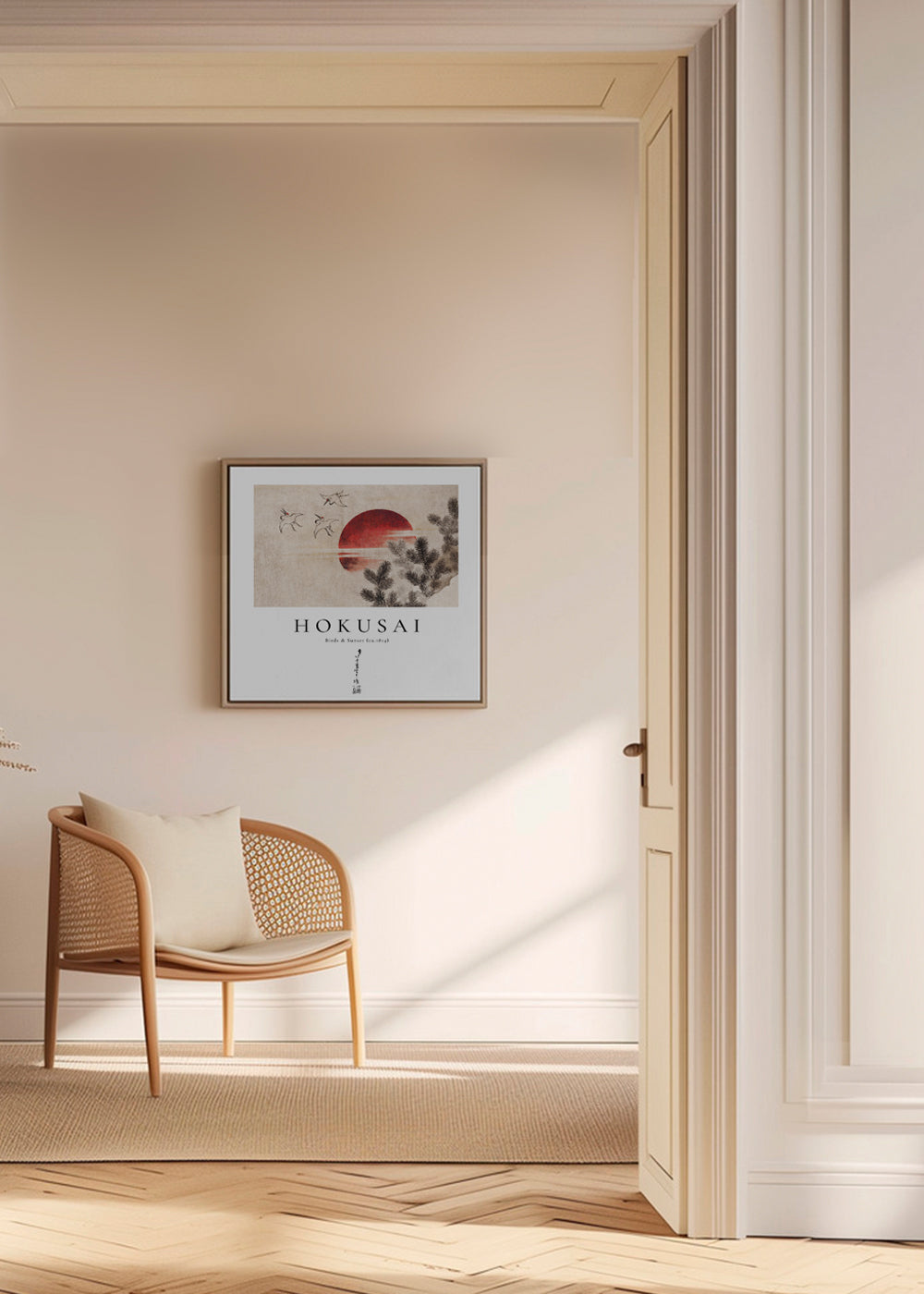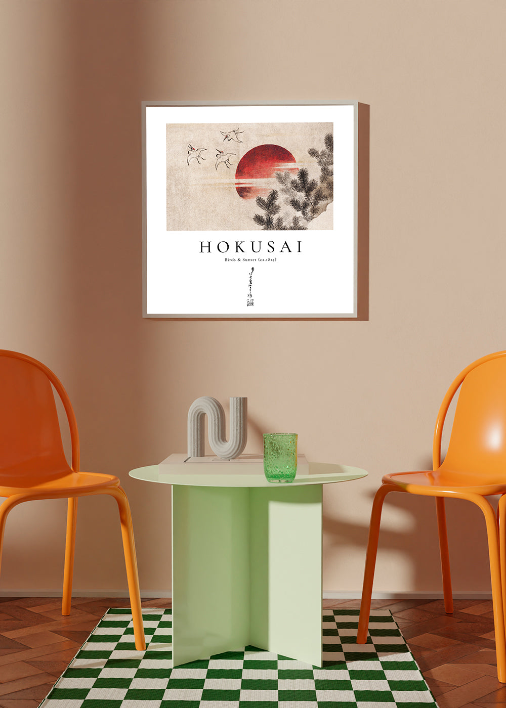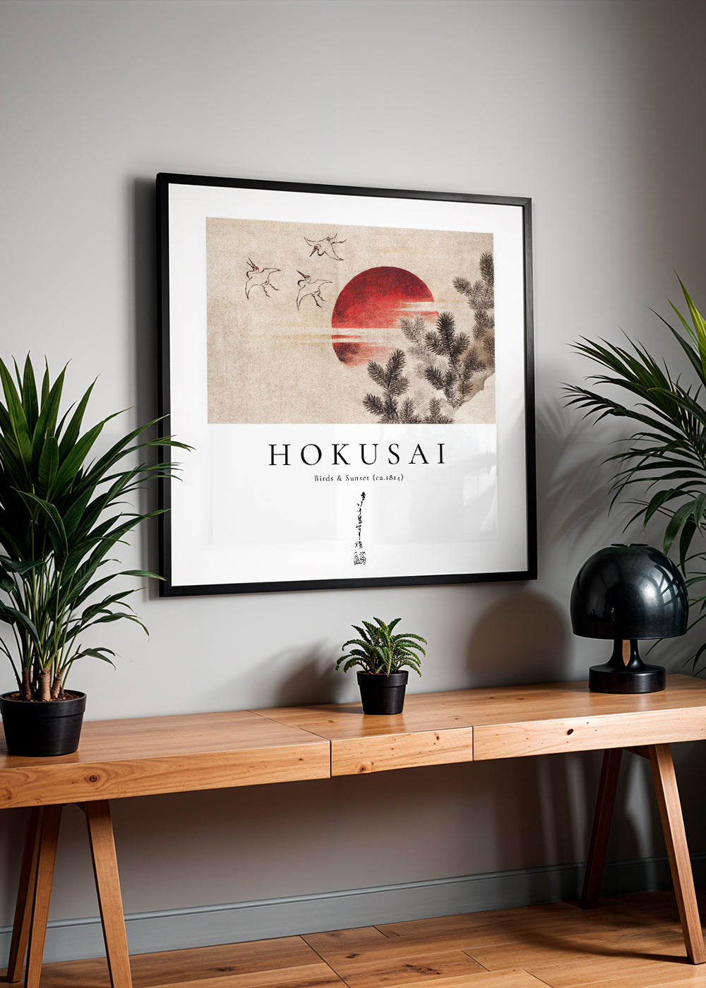 Scandi-Poster Katsushika Hokusai birds and sunset from Album of Sketches - Square