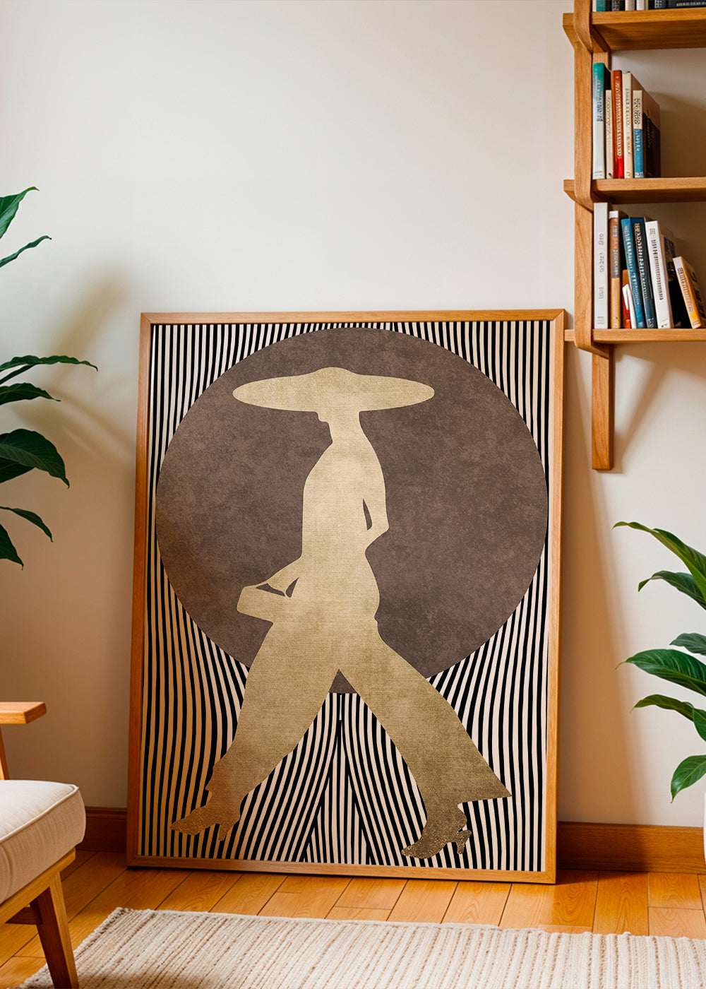 Dieses Poster aus unserer Themengruppe fashion-bilder und poster, kreiert von Kubistika, mit Farbtönen Braun, und Bildorientierung Vertikal. Geometrische Kunst ist eine elegante Stilrichtung für die Dekoration der Wände zu Hause. Eine leere Wand ist eine traurige Wand, aber mit einigen Bildern kannst du ihr ein Lächeln verleihen.