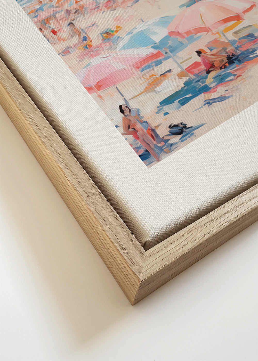Wenn Sie die Passepartout-Option wählen, fügen wir die weiße matte Platte dem Rahmen hinzu und reduzieren das Design der Arbeit. Wählen Sie beispielsweise ein Druckformat 50x70 cm, mit eichenfarbenem Rahmen und Passepartout, reduzieren wir das Design des Druckes auf das bisherige Format (40x50cm). So passt es sich perfekt an das Innenfenster des Passepartouts an.