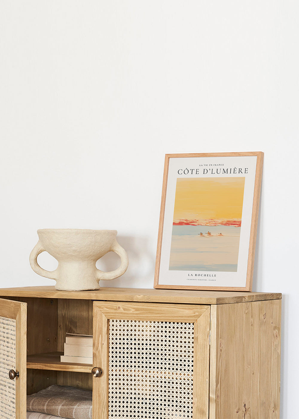 Wenn Sie die Passepartout-Option wählen, fügen wir die weiße matte Platte dem Rahmen hinzu und reduzieren das Design der Arbeit. Wählen Sie beispielsweise ein Druckformat 50x70 cm, mit eichenfarbenem Rahmen und Passepartout, reduzieren wir das Design des Druckes auf das bisherige Format (40x50cm). So passt es sich perfekt an das Innenfenster des Passepartouts an.
