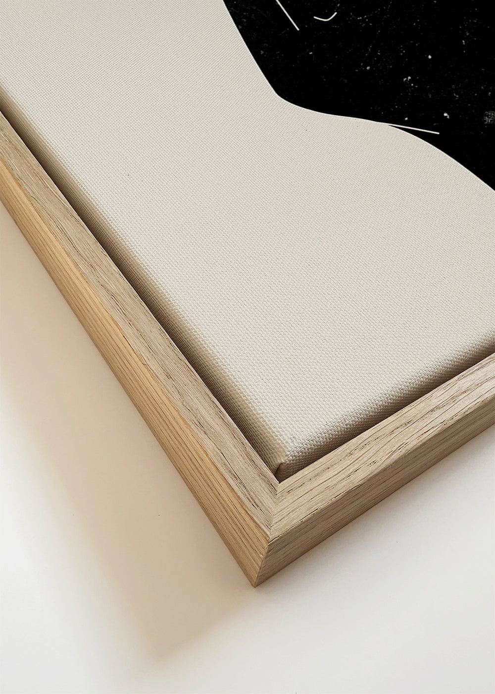 Alle unsere Rahmen werden in Spanien hergestellt. Die weißen, schwarzen und Eichenrahmen sind aus Ayous-Holz gefertigt, und die Eichenrahmen sind mit Eiche furniert, während die metallischen Rahmen aus Aluminium sind.