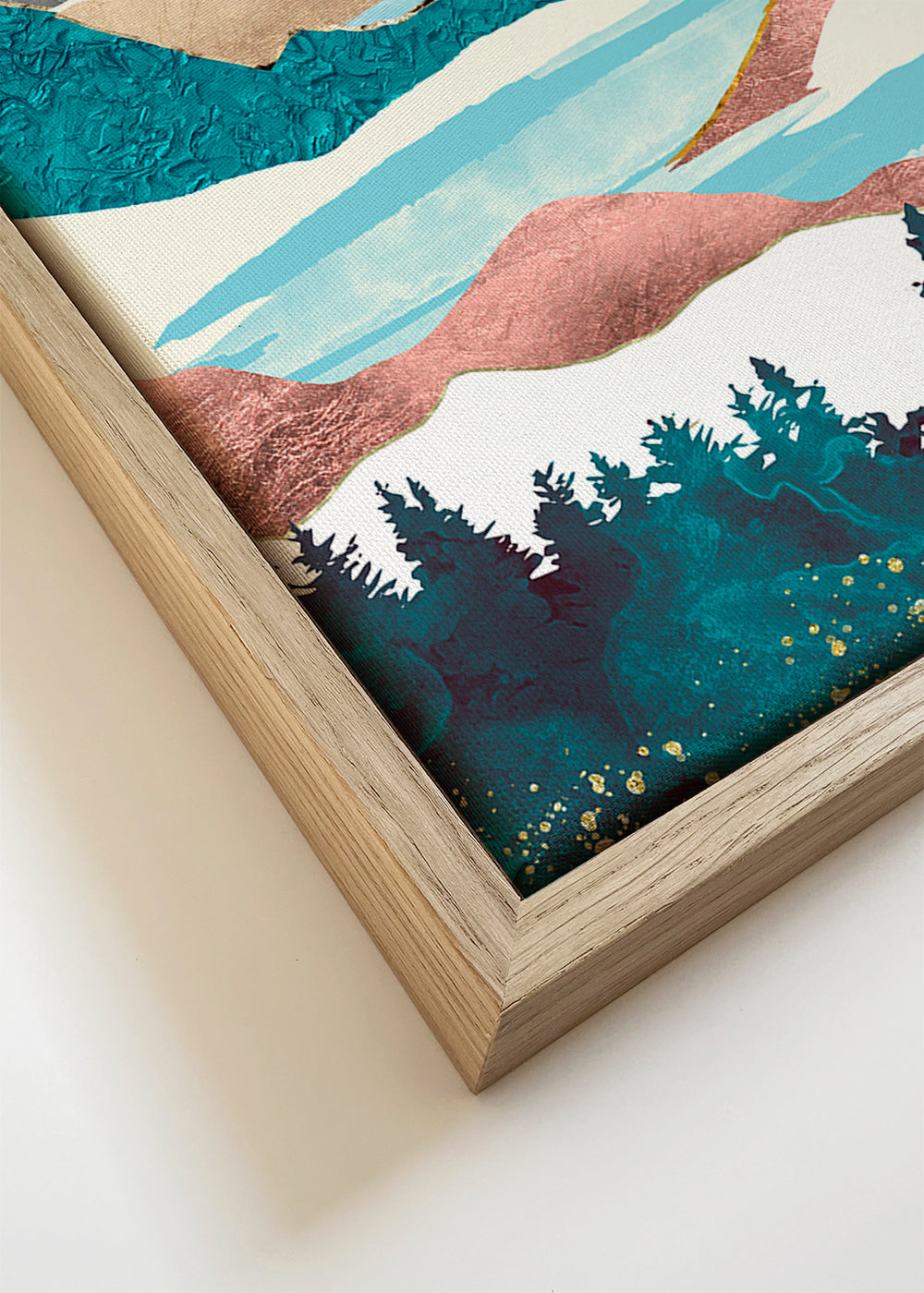Alle unsere Rahmen werden in Spanien hergestellt. Die weißen, schwarzen und Eichenrahmen sind aus Ayous-Holz gefertigt, und die Eichenrahmen sind mit Eiche furniert, während die metallischen Rahmen aus Aluminium sind.