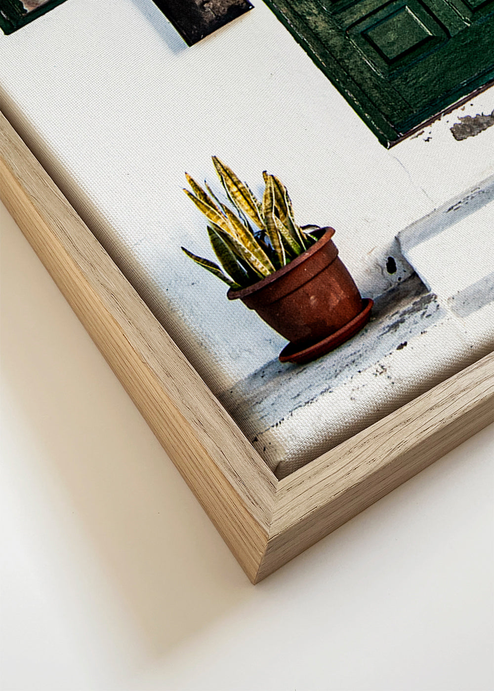 Alle unsere Rahmen werden in Spanien hergestellt. Die weißen, schwarzen und Eichenrahmen sind aus Ayous-Holz gefertigt, und die Eichenrahmen sind mit Eiche furniert, während die metallischen Rahmen aus Aluminium sind.