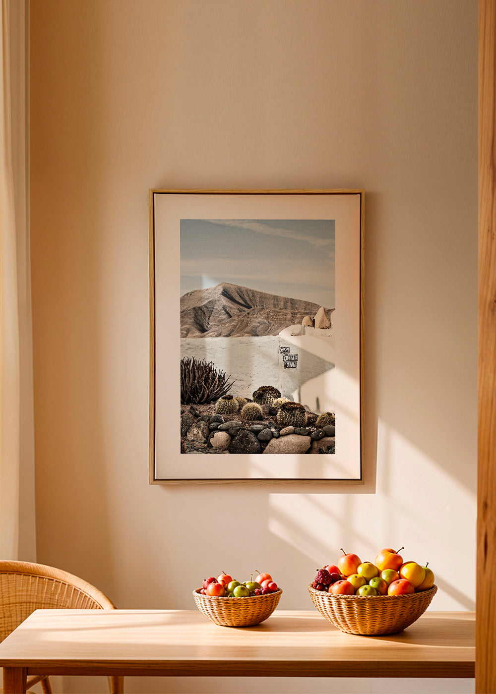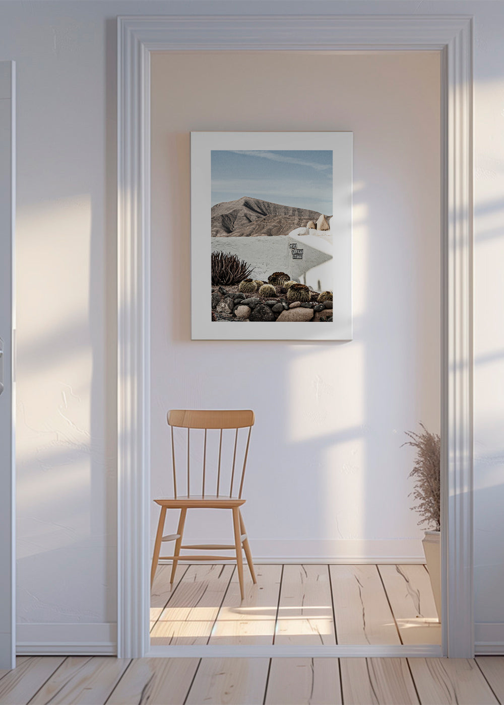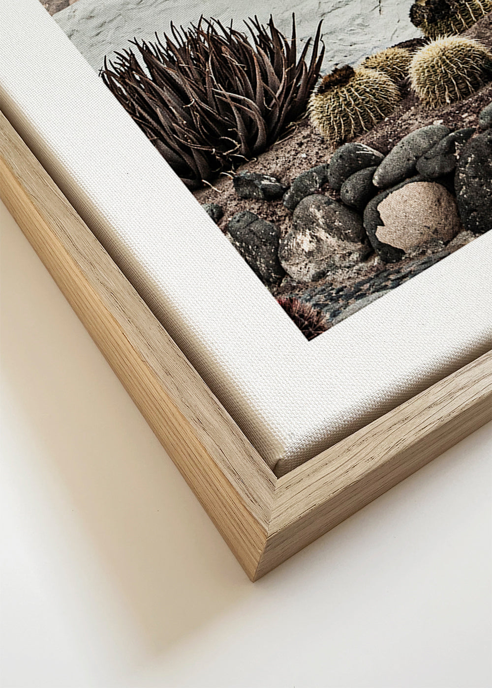 Wenn Sie die Passepartout-Option wählen, fügen wir die weiße matte Platte dem Rahmen hinzu und reduzieren das Design der Arbeit. Wählen Sie beispielsweise ein Druckformat 50x70 cm, mit eichenfarbenem Rahmen und Passepartout, reduzieren wir das Design des Druckes auf das bisherige Format (40x50cm). So passt es sich perfekt an das Innenfenster des Passepartouts an.