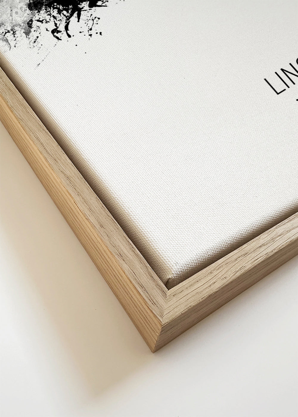 Die Holzrahmen bis 50x70 (im Lieferumfang enthalten) haben eine Breite von 1,5 cm und eine Tiefe von 3 cm, während bei den größeren die Breite 2 cm und eine Tiefe von 3 cm beträgt.