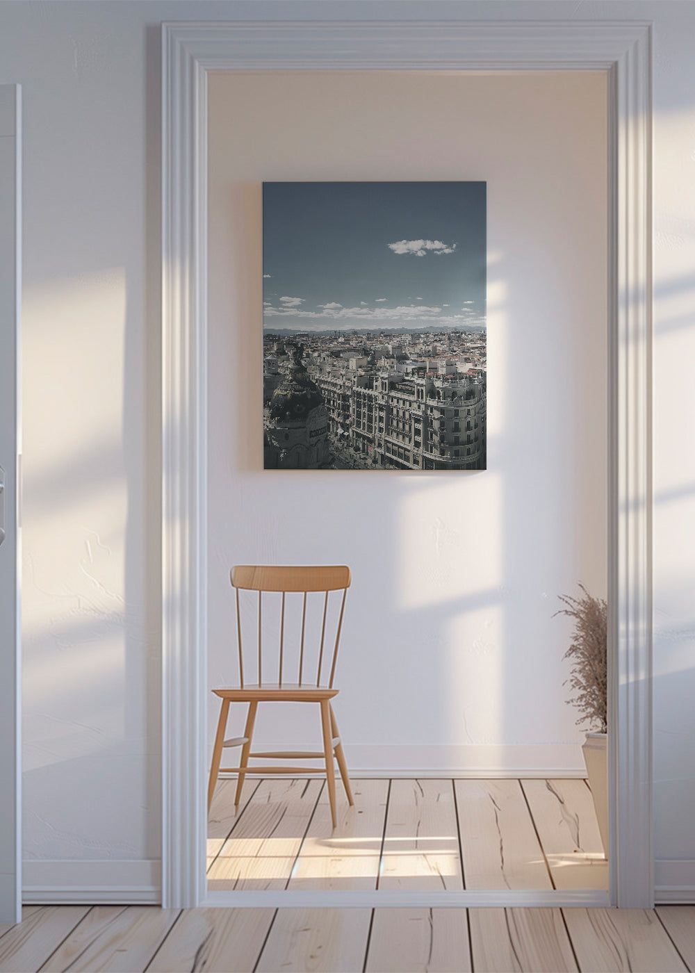 Das photopanel oder foto panel,ist eine Holzplatte, auf der der Druck mit einer Schutzschicht aufgeklebt wird. Dieses Paneel hat eine Tiefe von 1 cm und gibt der Arbeit die ganze Aufmerksamkeit, da es nicht notwendig ist, es zu rahmen. Darüber hinaus vermeiden Fotos auf Holz aus demselben Grund die Reflexion des Glases oder des schützenden Kunststoffs eines gewöhnlichen Gemäldes.