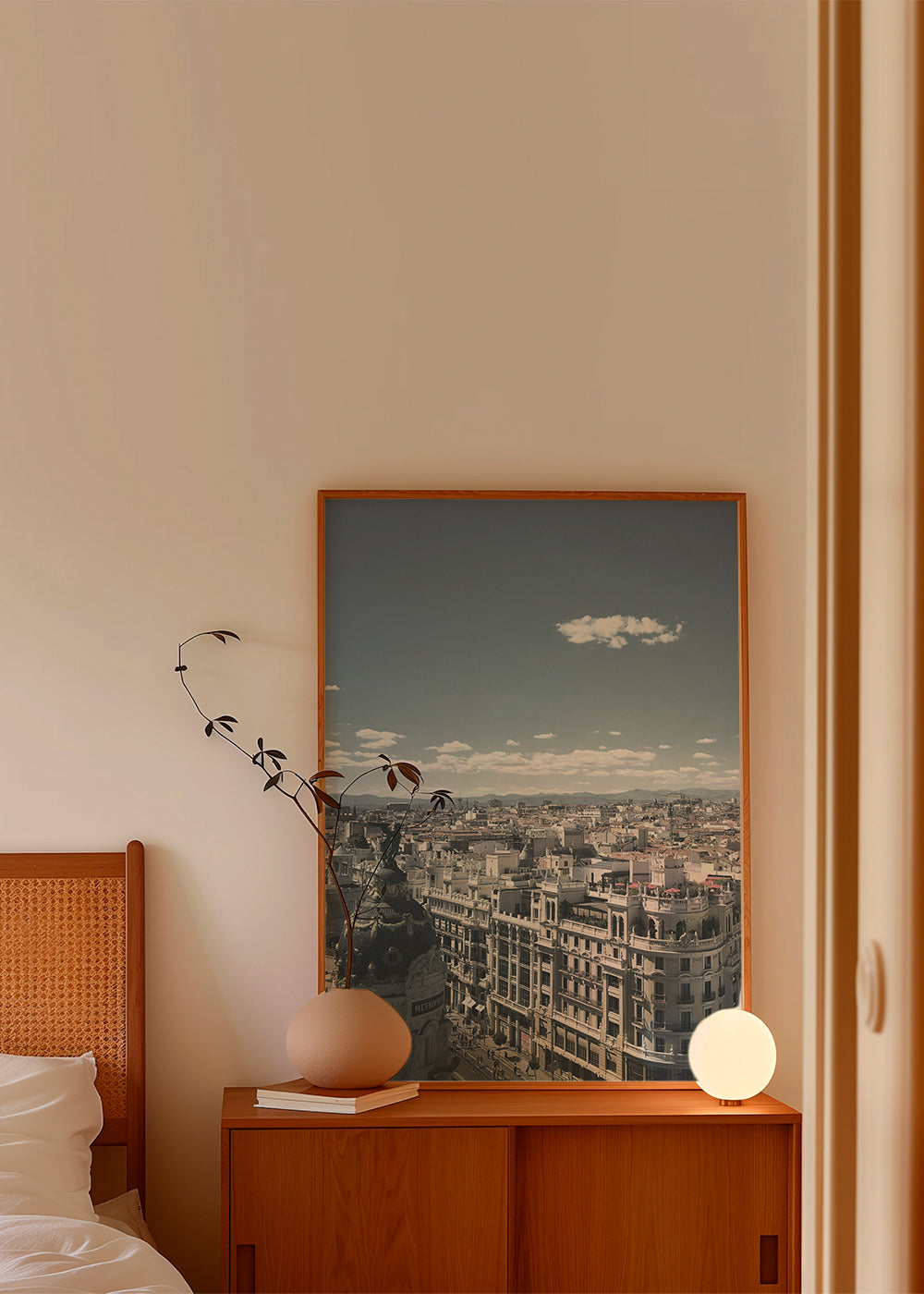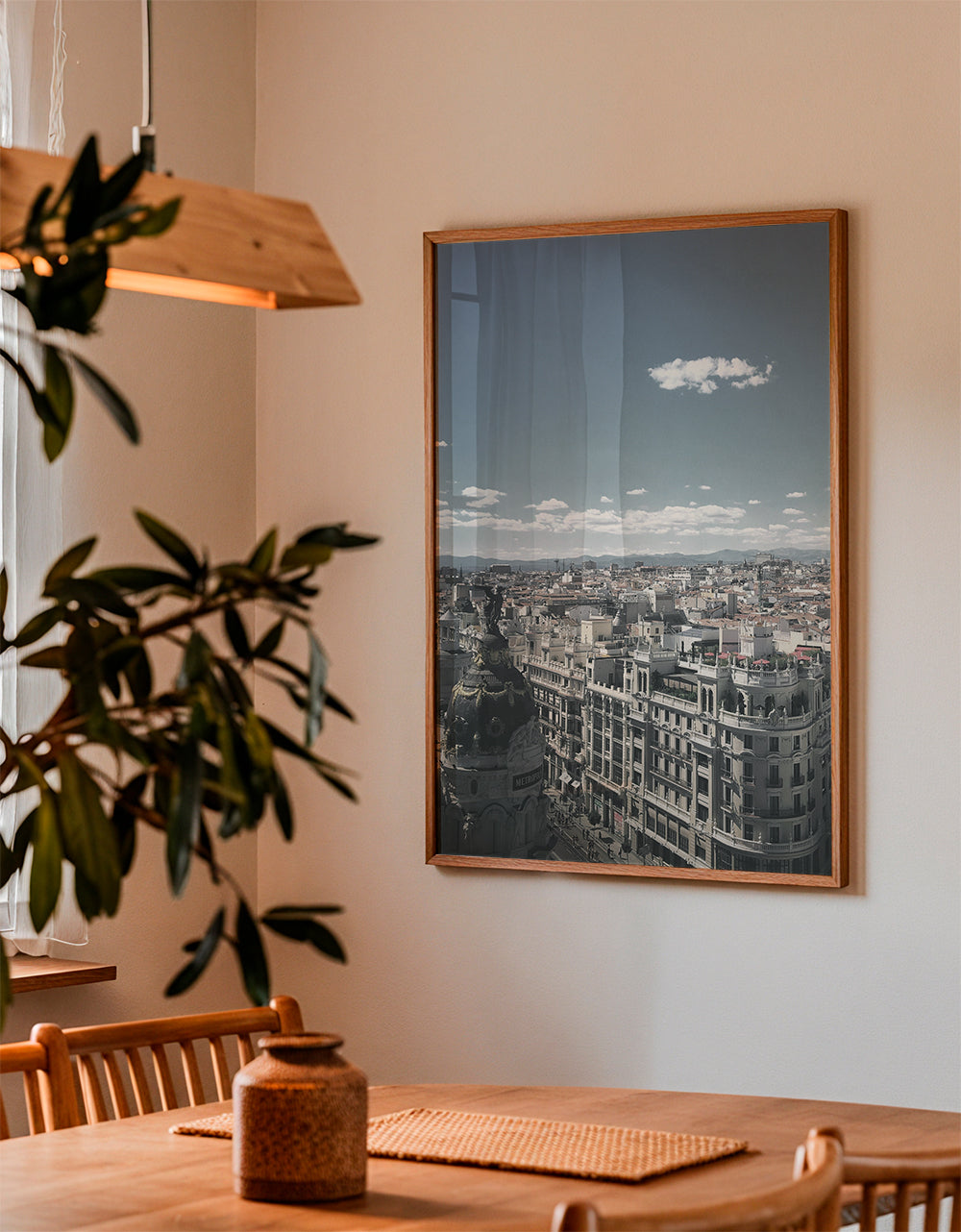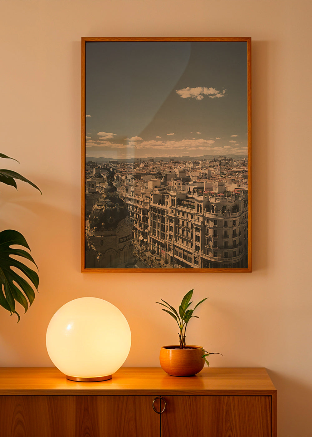 Alle unsere Rahmen werden in Spanien hergestellt. Die weißen, schwarzen und Eichenrahmen sind aus Ayous-Holz gefertigt, und die Eichenrahmen sind mit Eiche furniert, während die metallischen Rahmen aus Aluminium sind.