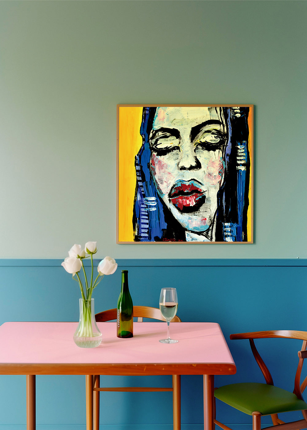 Ein Poster aus unserer Kunstauswahl wandbild mit frau, kreiert von 1x, mit Farbverlauf blau, und mit Bildposition vertikal. Wandbilder mit Zeichnungen und Skizzen verleihen jeder Inneneinrichtung einen originellen Touch. Wände, die mit Bildern dekoriert sind, sind unübertrefflich schön.