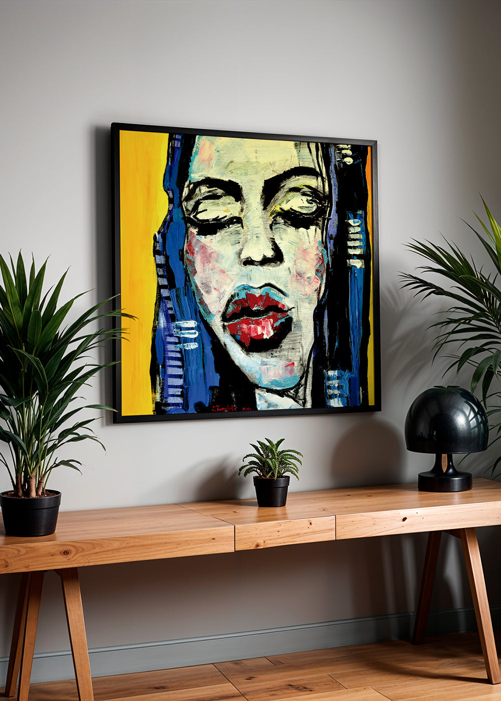 Das Passepartout ist eine weiße, matte Pappe, die das Poster umgibt, um es vor Methacrylat zu schützen, und die auch die Ausdruckskraft der Arbeit verstärkt und Details hervorhebt.