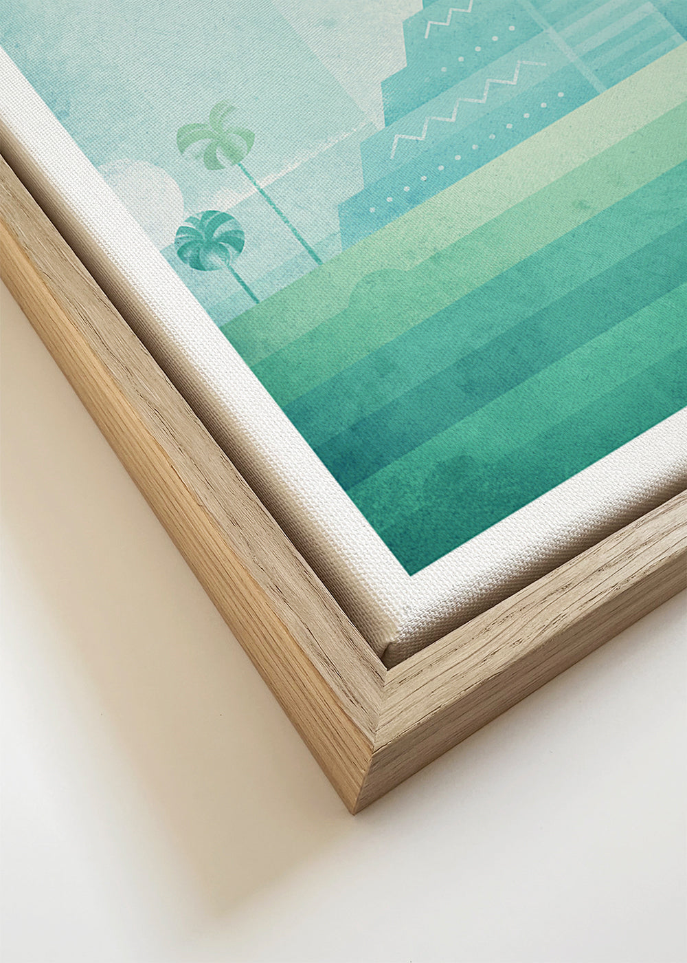 Alle unsere Rahmen werden in Spanien hergestellt. Die weißen, schwarzen und Eichenrahmen sind aus Ayous-Holz gefertigt, und die Eichenrahmen sind mit Eiche furniert, während die metallischen Rahmen aus Aluminium sind.