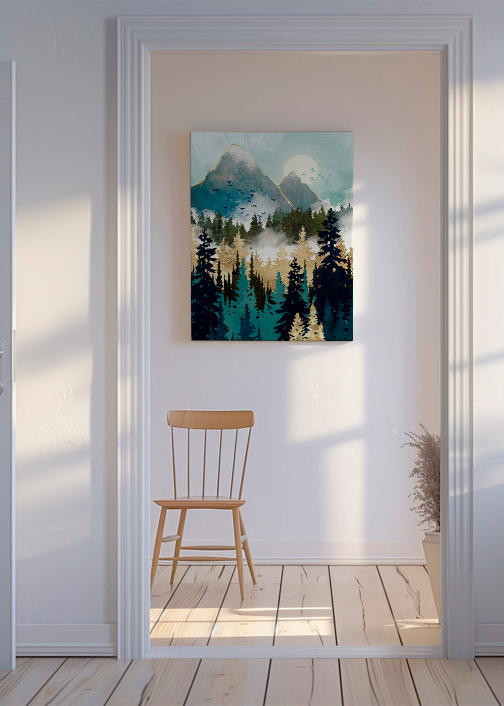 Schönes Kunstwerk aus unserer Kunstauswahl bergbilder und bergposter, des Kreativschöpfers SpaceFrog Designs, Farbtönen Grün, und im Format Vertikal. Eine schöne Landschaft, perfekt zur Kombination mit jeder Natur-Deko. Eine harmonische Wanddeko ist bei jedem Einrichtungsstil wichtig.