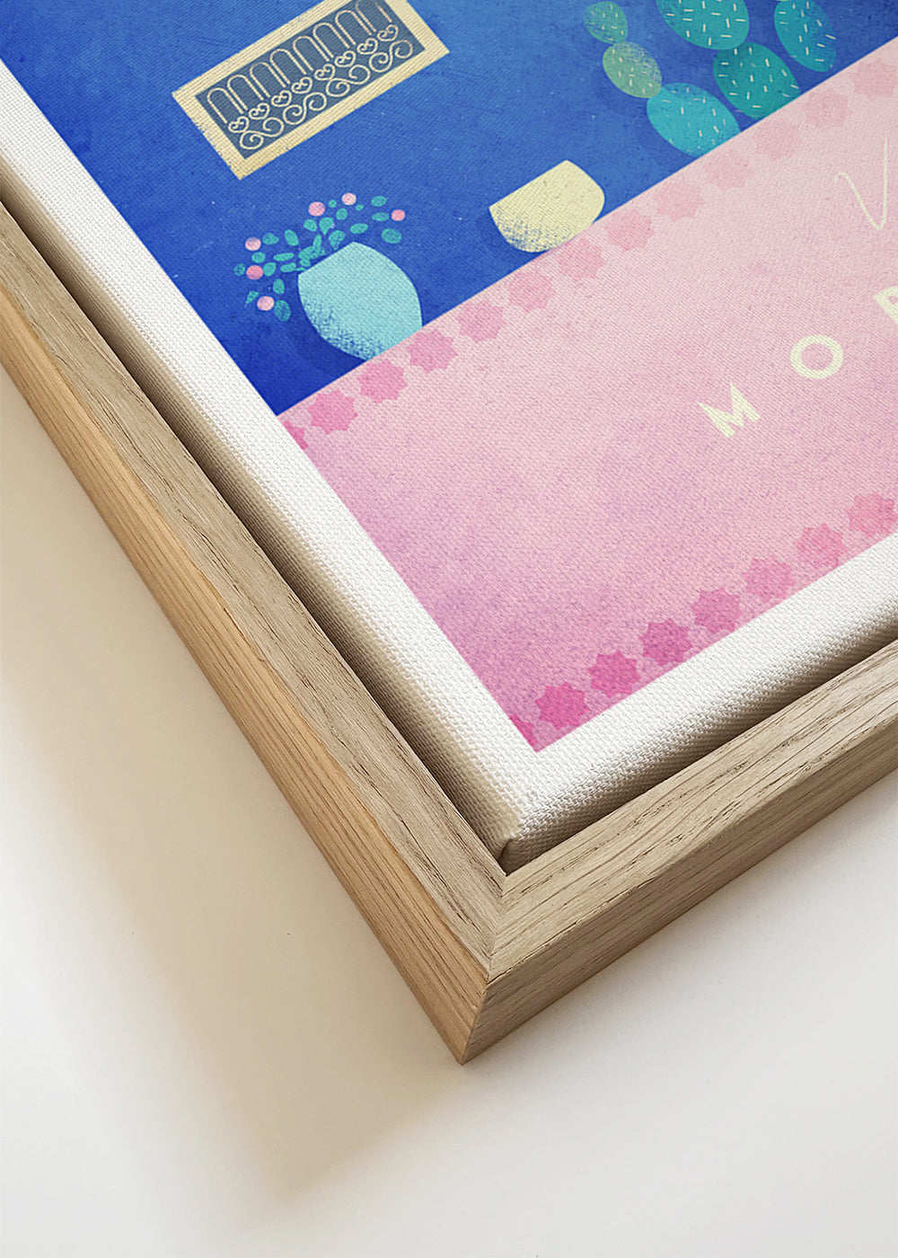 Alle unsere Rahmen werden in Spanien hergestellt. Die weißen, schwarzen und Eichenrahmen sind aus Ayous-Holz gefertigt, und die Eichenrahmen sind mit Eiche furniert, während die metallischen Rahmen aus Aluminium sind.