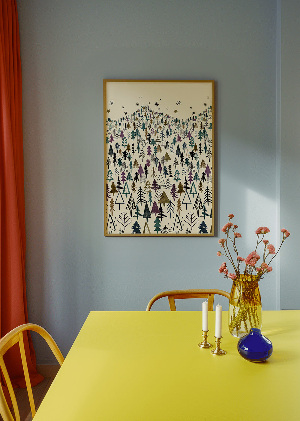 Scandi-Poster Mountain Forest Trees