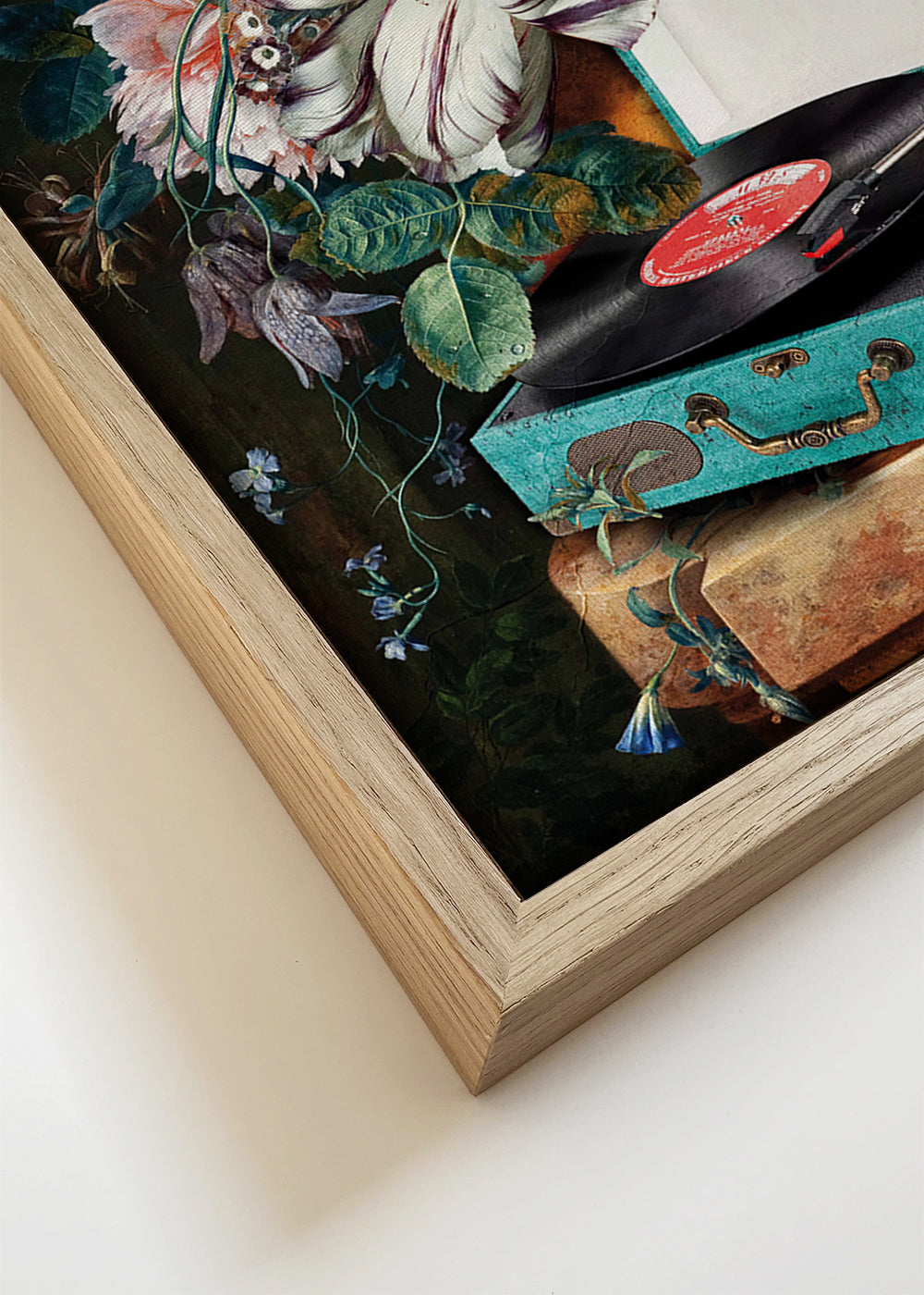 Wenn Sie die Passepartout-Option wählen, fügen wir die weiße matte Platte dem Rahmen hinzu und reduzieren das Design der Arbeit. Wählen Sie beispielsweise ein Druckformat 50x70 cm, mit eichenfarbenem Rahmen und Passepartout, reduzieren wir das Design des Druckes auf das bisherige Format (40x50cm). So passt es sich perfekt an das Innenfenster des Passepartouts an.