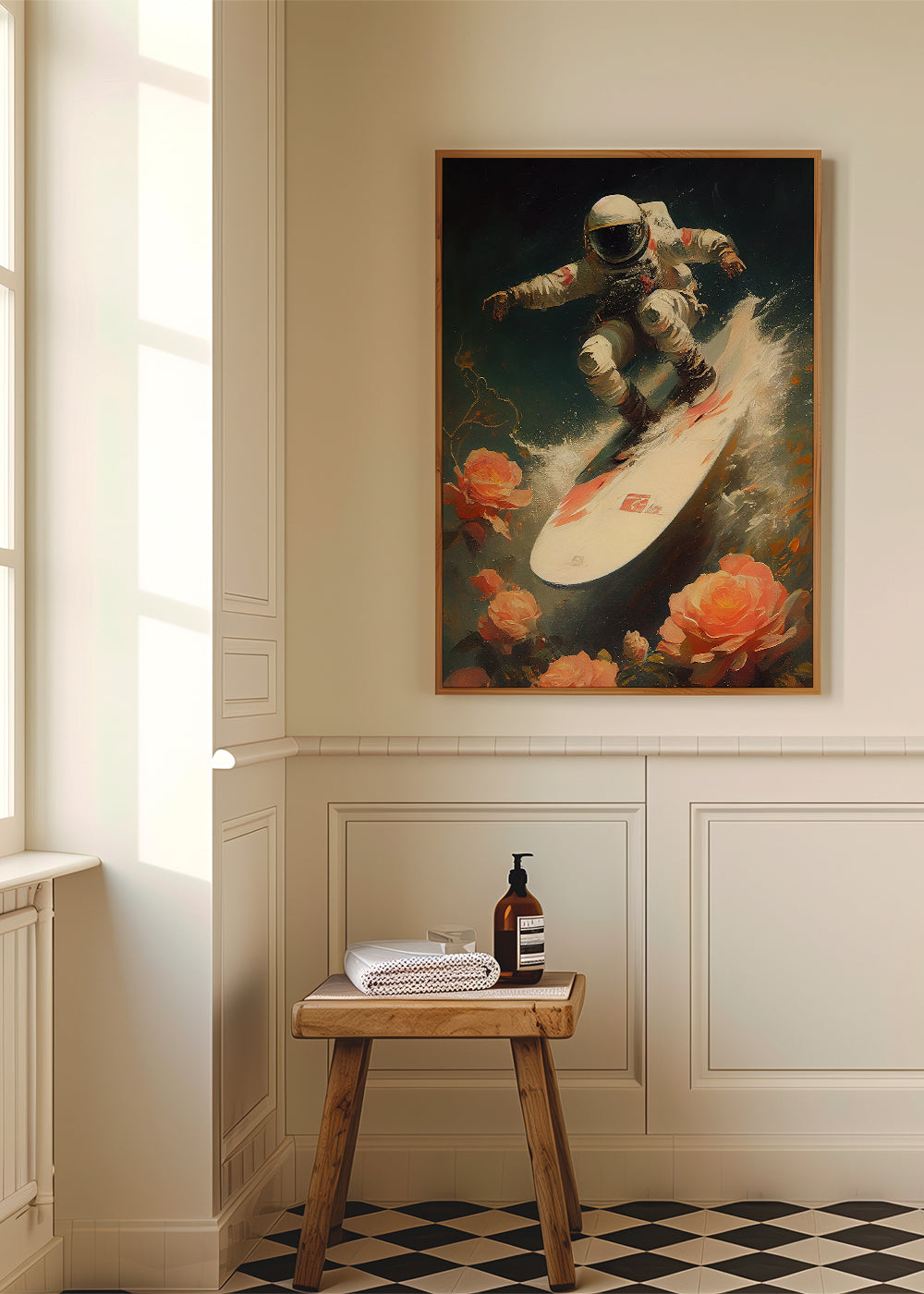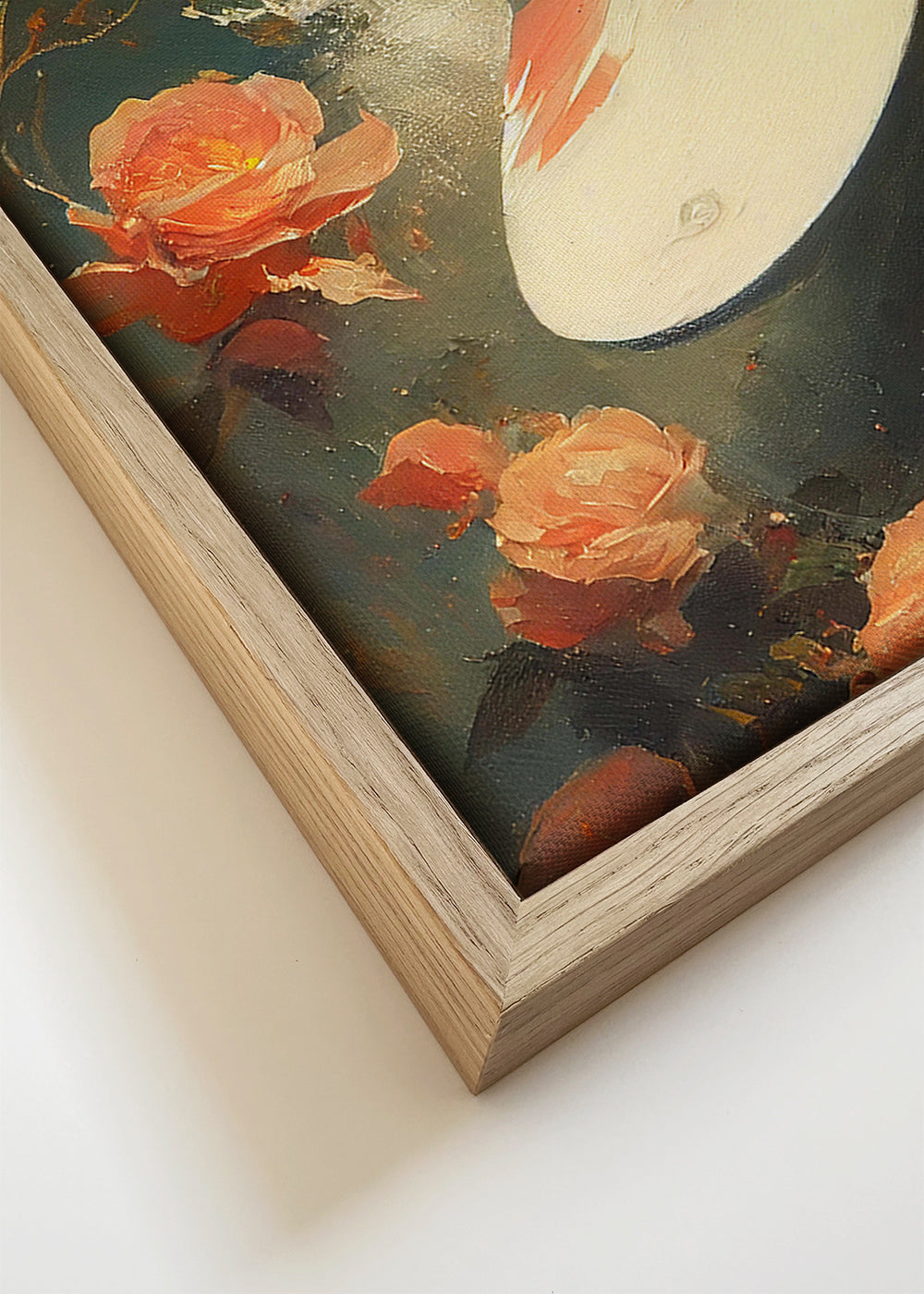 Wenn Sie die Passepartout-Option wählen, fügen wir die weiße matte Platte dem Rahmen hinzu und reduzieren das Design der Arbeit. Wählen Sie beispielsweise ein Druckformat 50x70 cm, mit eichenfarbenem Rahmen und Passepartout, reduzieren wir das Design des Druckes auf das bisherige Format (40x50cm). So passt es sich perfekt an das Innenfenster des Passepartouts an.
