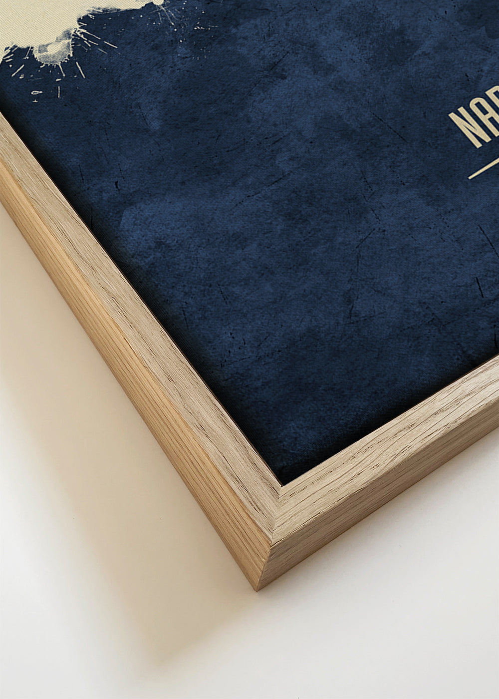 Wenn Sie die Passepartout-Option wählen, fügen wir die weiße matte Platte dem Rahmen hinzu und reduzieren das Design der Arbeit. Wählen Sie beispielsweise ein Druckformat 50x70 cm, mit eichenfarbenem Rahmen und Passepartout, reduzieren wir das Design des Druckes auf das bisherige Format (40x50cm). So passt es sich perfekt an das Innenfenster des Passepartouts an.