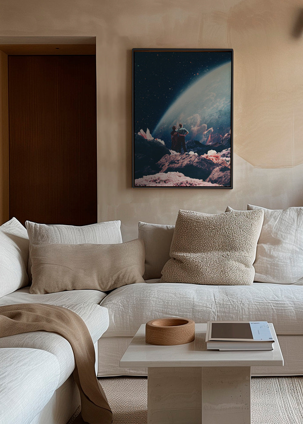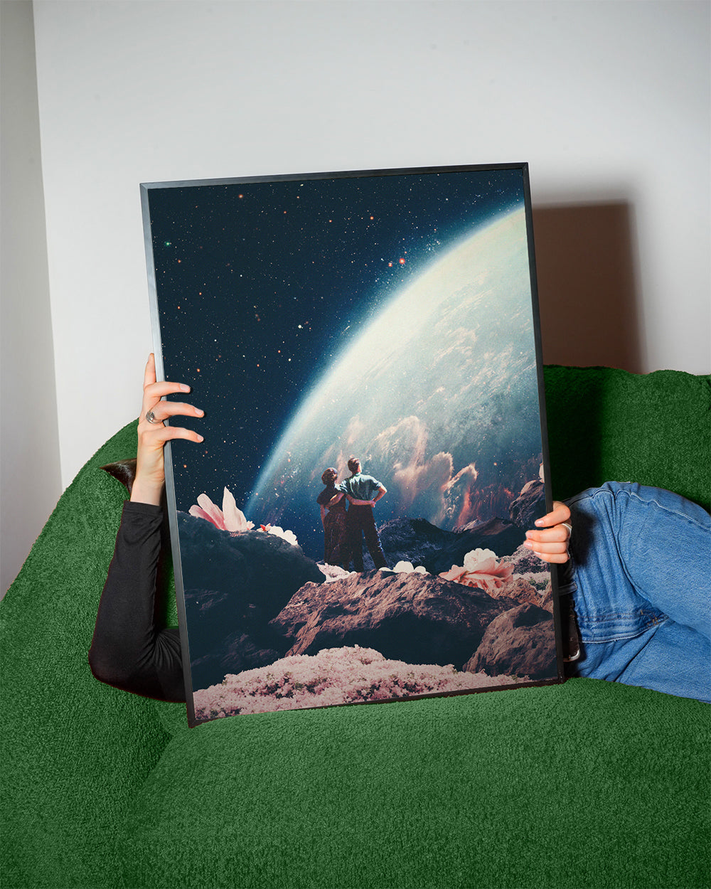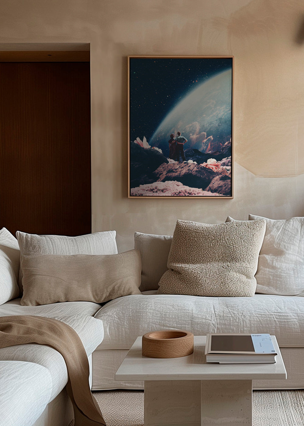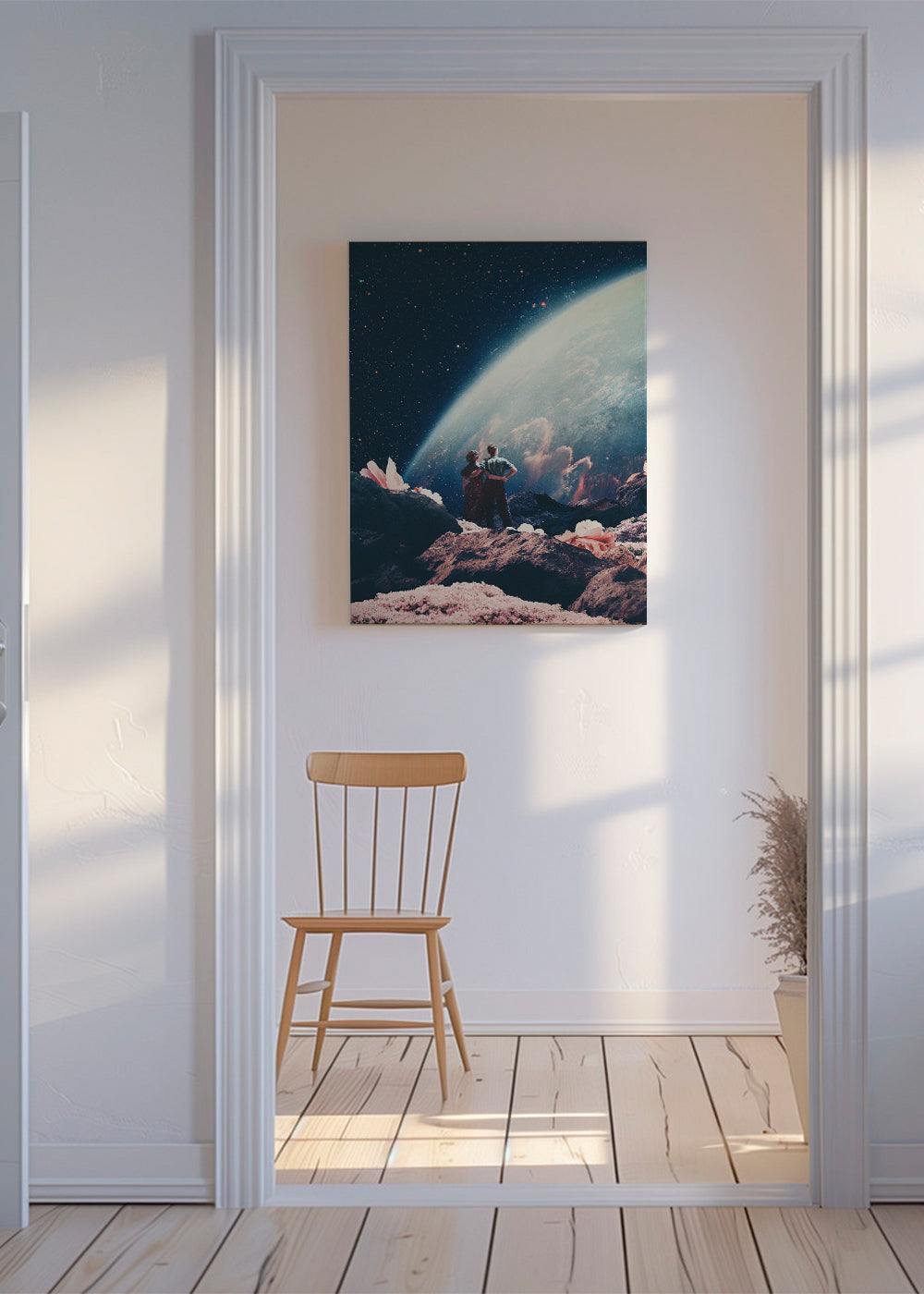 Schönes Designs aus unserer Kunstauswahl planeten-bilder, aus der Kollektion des Künstlers Frank Moth, mit einem Hauch von blau, und ideal für die Bildposition vertikal. Retro-Poster lassen sich gut mit anderen +Retro-Vintage-Bildern+ kombinieren und verleihen dem Raum einen originellen Touch. Unverfälschte Kunst und authentisches Design.
