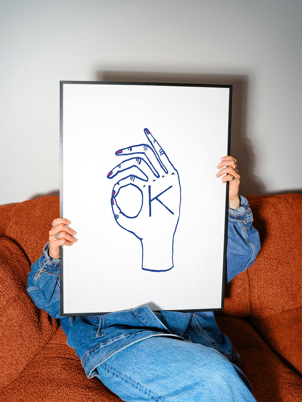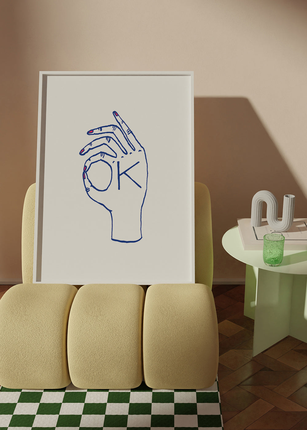 Ein Poster aus unserer Bilderauswahl hand-bilder und poster mit hand-motiven, von typealive, mit Farbverlauf Blau, und im Format Vertikal. Illustration zählt zu der deutlichsten Ausdrucksform der bildenden Kunst. Dieses Wandbild lässt niemanden gleichgültig. Frische und Originalität.
