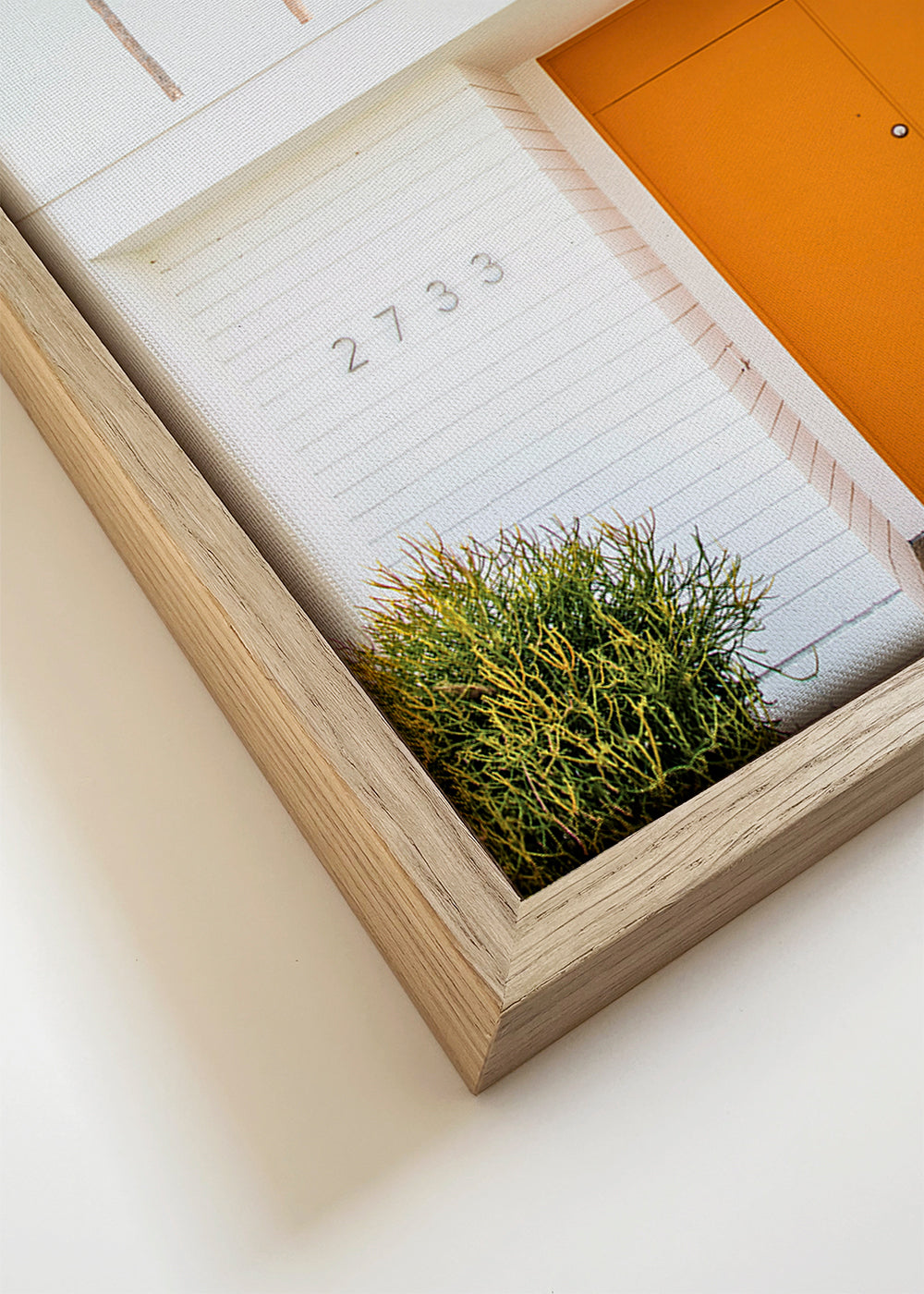 Alle unsere Rahmen werden in Spanien hergestellt. Die weißen, schwarzen und Eichenrahmen sind aus Ayous-Holz gefertigt, und die Eichenrahmen sind mit Eiche furniert, während die metallischen Rahmen aus Aluminium sind.